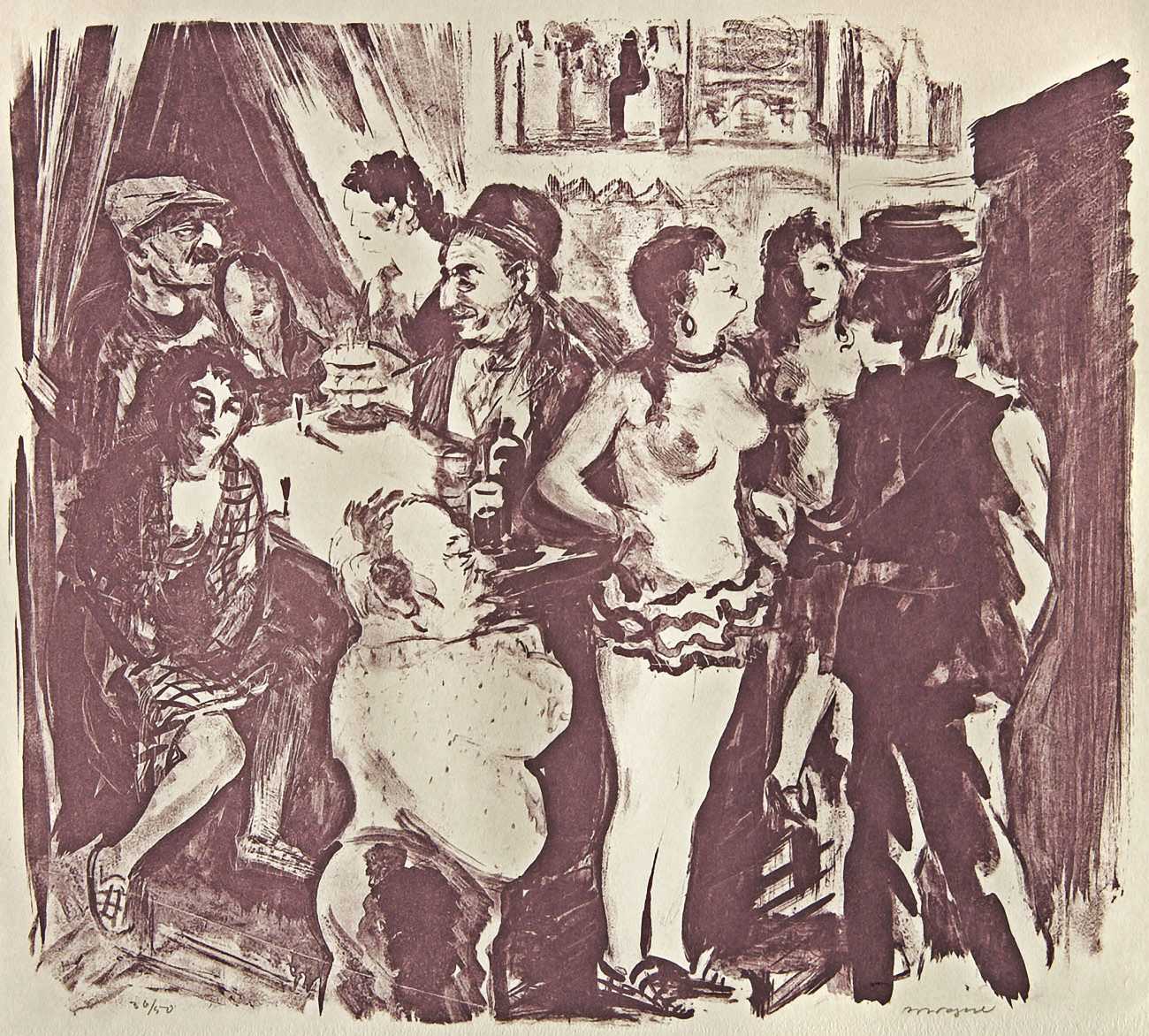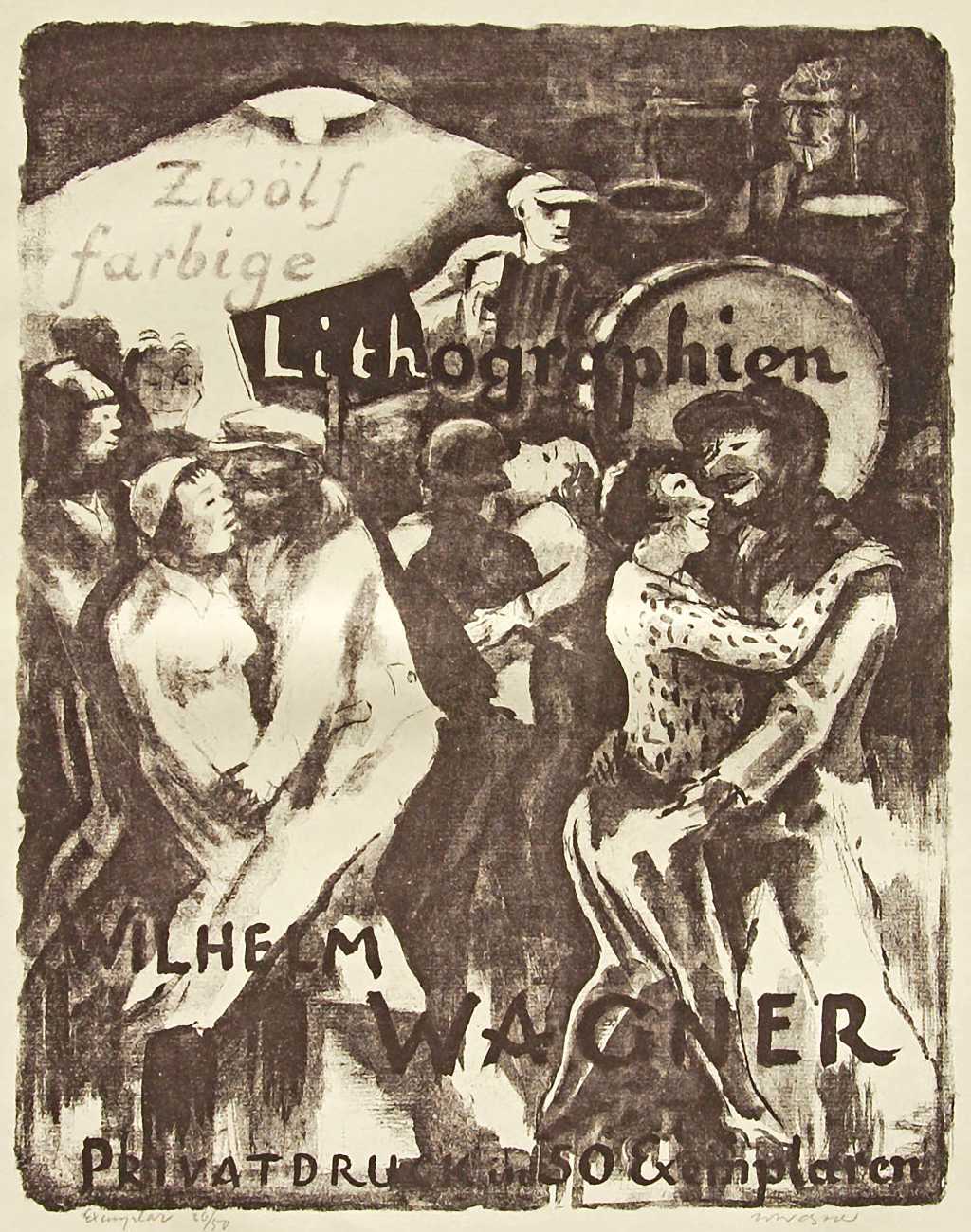 Wilhelm Wagner’s portfolio with this title was not the first. The first, and better-known, was a joint effort between artists Michel Fingesten and Robert Genin, published by Pan-Presse in 1919 and consisting of eight engraved plates by each artist. Fingesten’s Die Trinker (The Drinker) is considered one of his best early works. The Fingesten-Genin production ran to just fifty copies, and soon sold out.