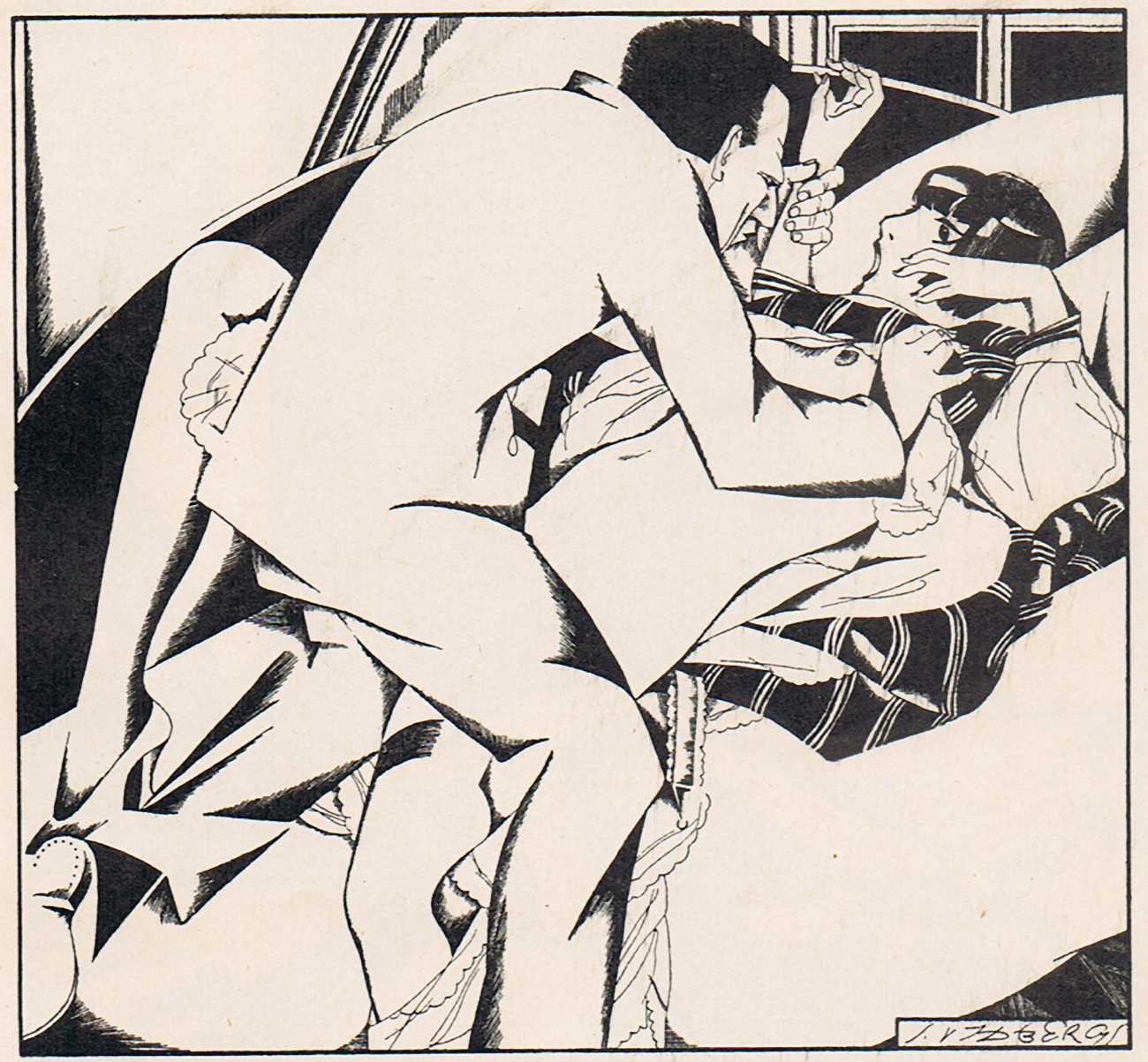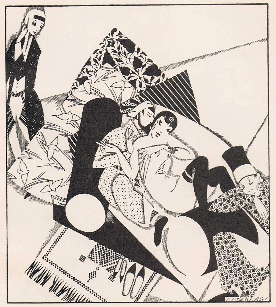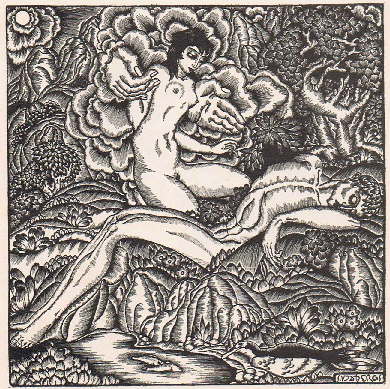The 1920s saw a flowering of art and literature in Latvia, and Vidbergs was kept busy illustrating some of the erotic classics of the period, including Pierre Louÿs’ Bilitis and the first Latvian translation of the Kama Sutra. In 1926 the art publisher Saule (Latvian for Sunshine) put together a collection of 24 of his erotic prints with a foreword in Latvian and French by the art historian Visvaldis Pengerots. The publisher clearly had no doubt what the title should be.