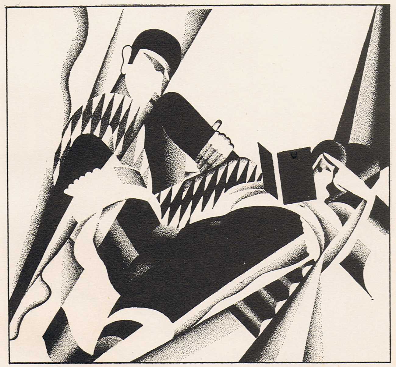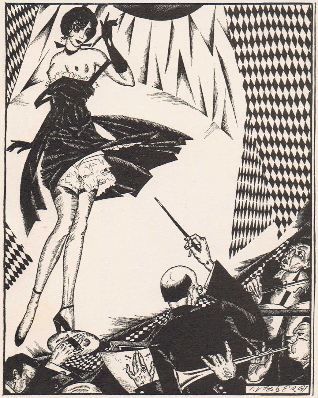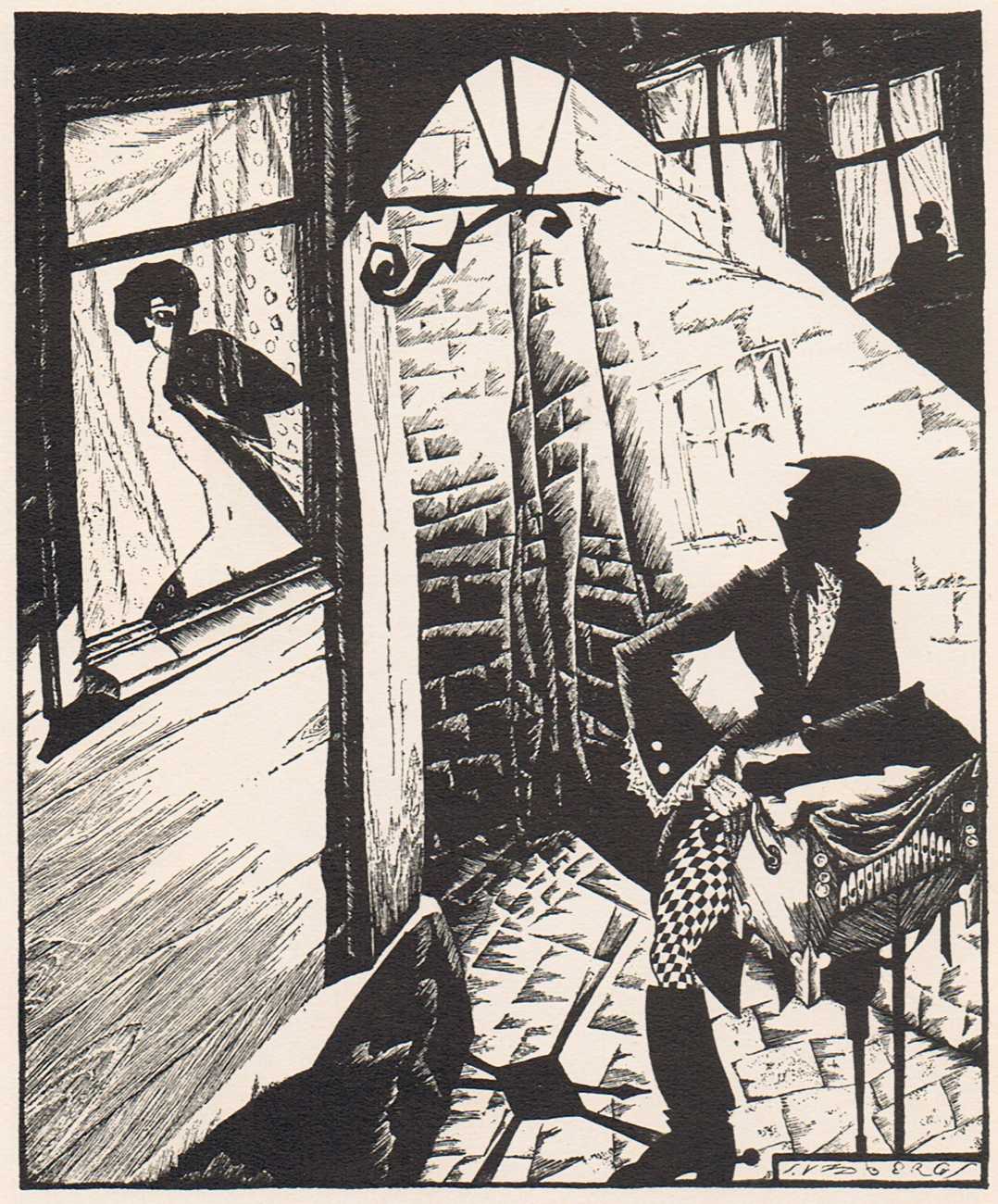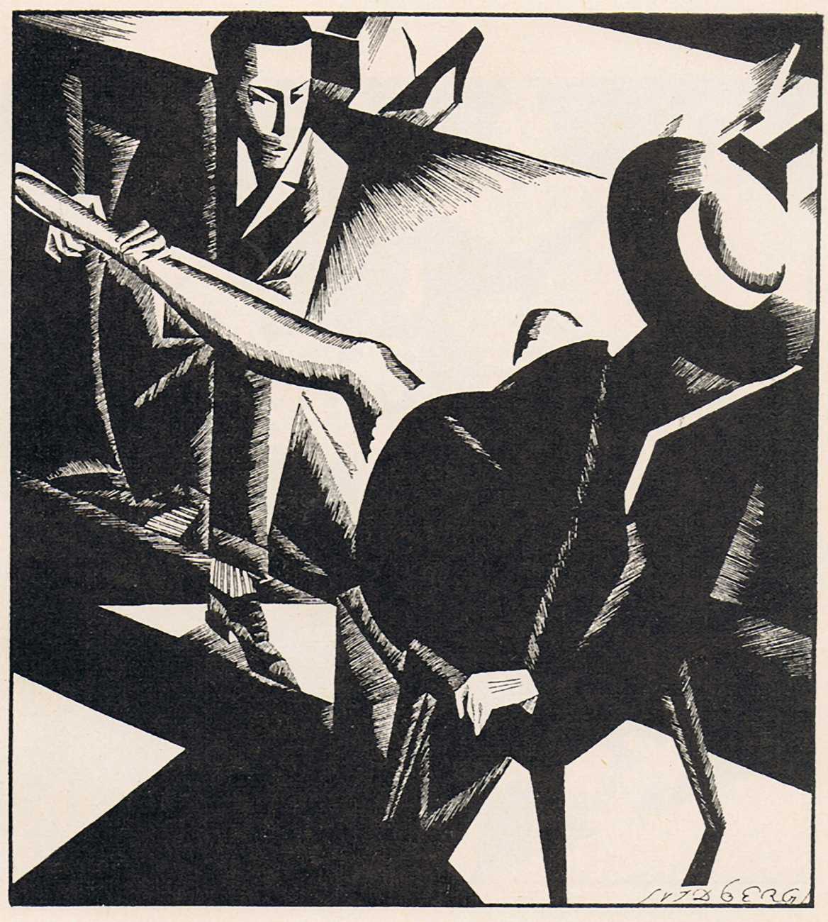 To modern eyes, and even compared with many of the erotic portfolios being produced in Berlin, Vienna and Paris during the late 1920s, Vidbergs’ Erotika is in truth not particularly erotic, more obliquely suggestive. The images tell us more about the nature of relationships at the time than about sensual intimacy, the juxtaposition of stockinged legs and lacy underwear with suspicious male(valent) lurking hinting at liaisons which were probably not very consensual.