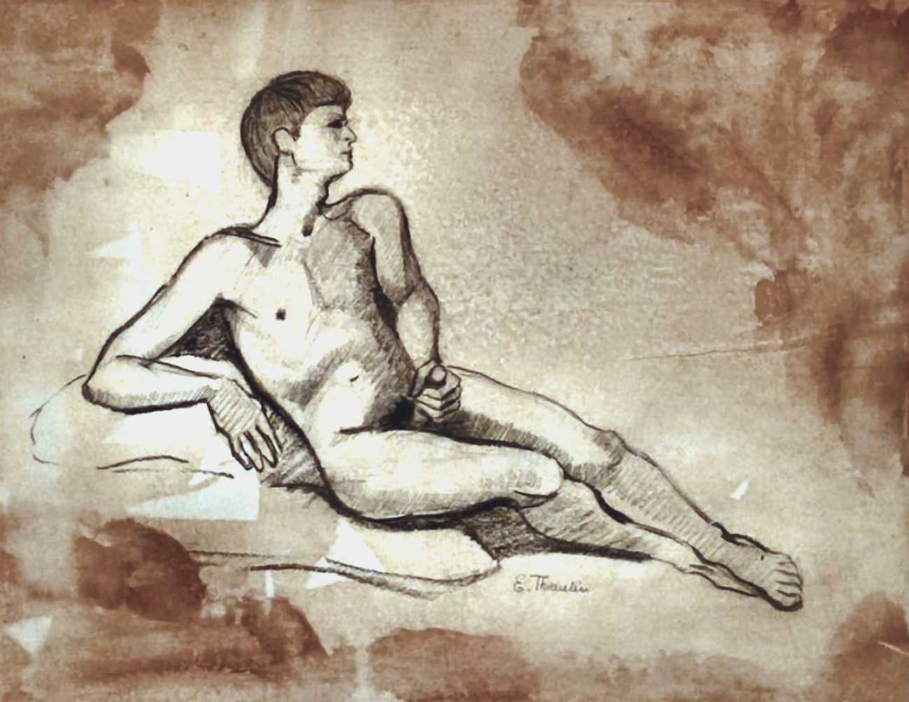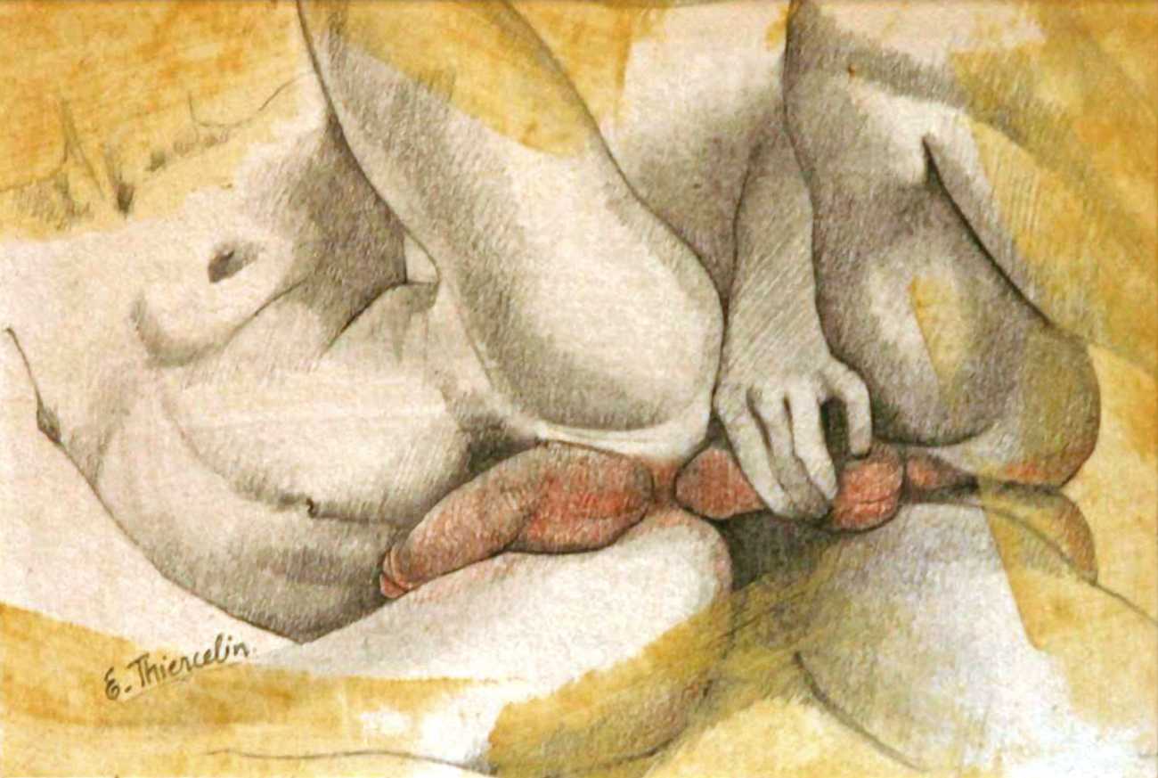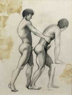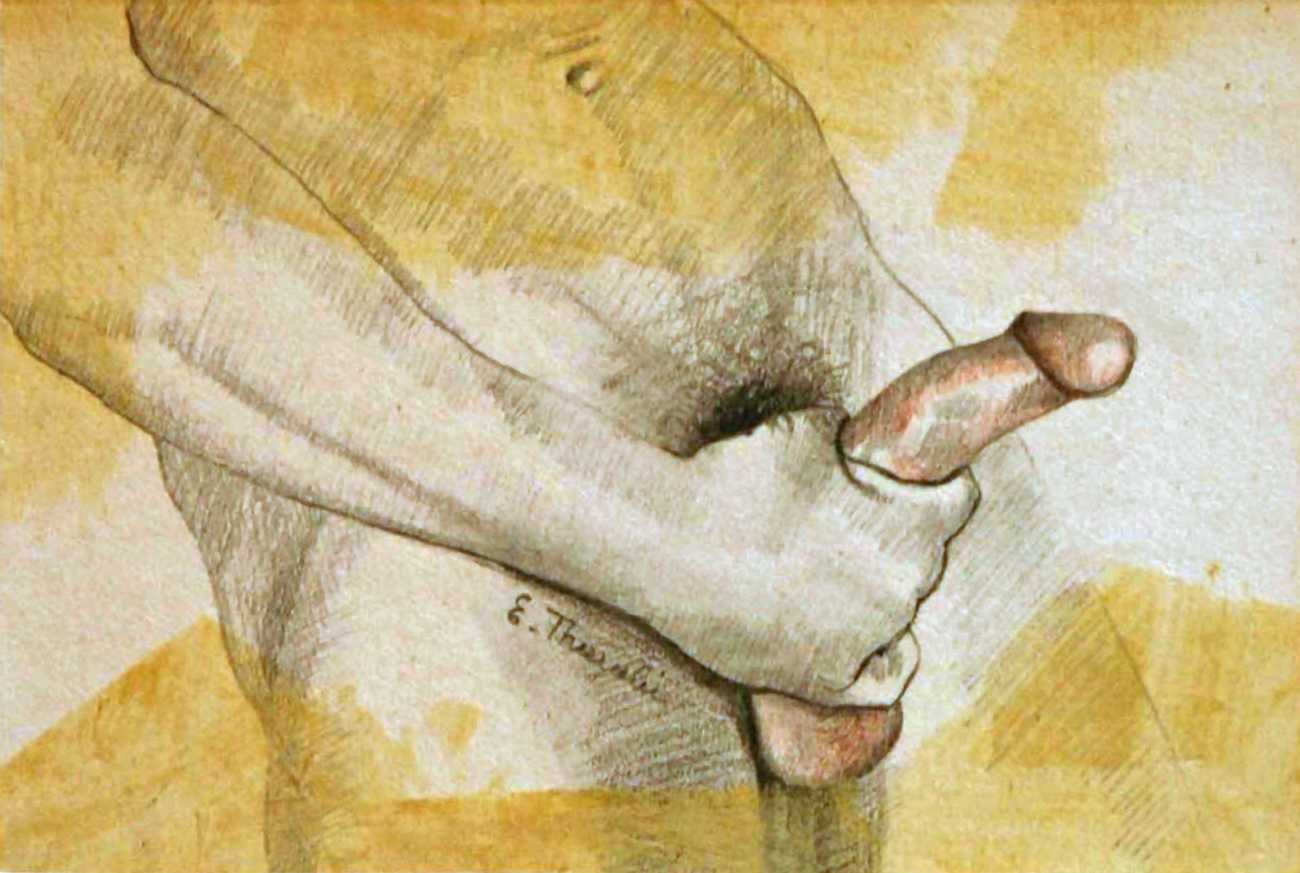 Like the Alphabet Phallique drawings, these were included in the 2016 auction of the contents of the Musée de l’Érotisme at Cornette de Saint Cyr – the first ten are clearly intended as a series, plus five others including a fine portrait of four male torsos, two from the back and two from the front.