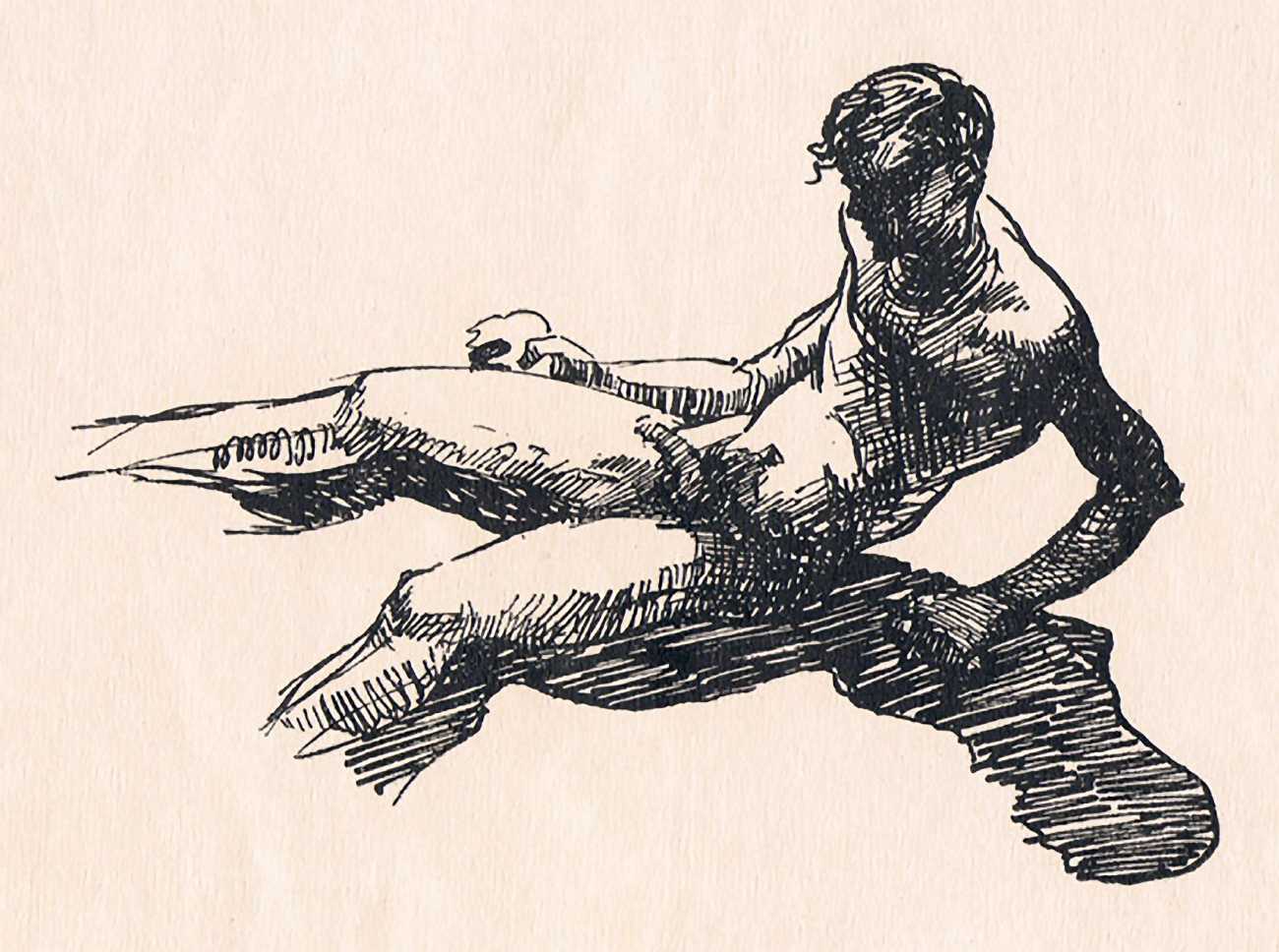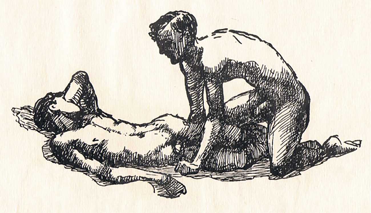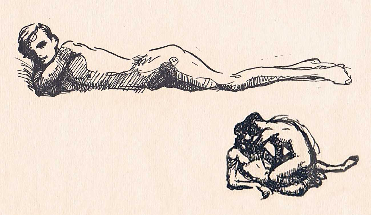 There is remarkably little to say about this set of competent, understated homoerotic drawings privately published in Berlin in 1921, in a limited numbered edition of sixty copies. It has been suggested that the artist was Russian, though the style is not distinctive enough to give us any clues as to their identity.
