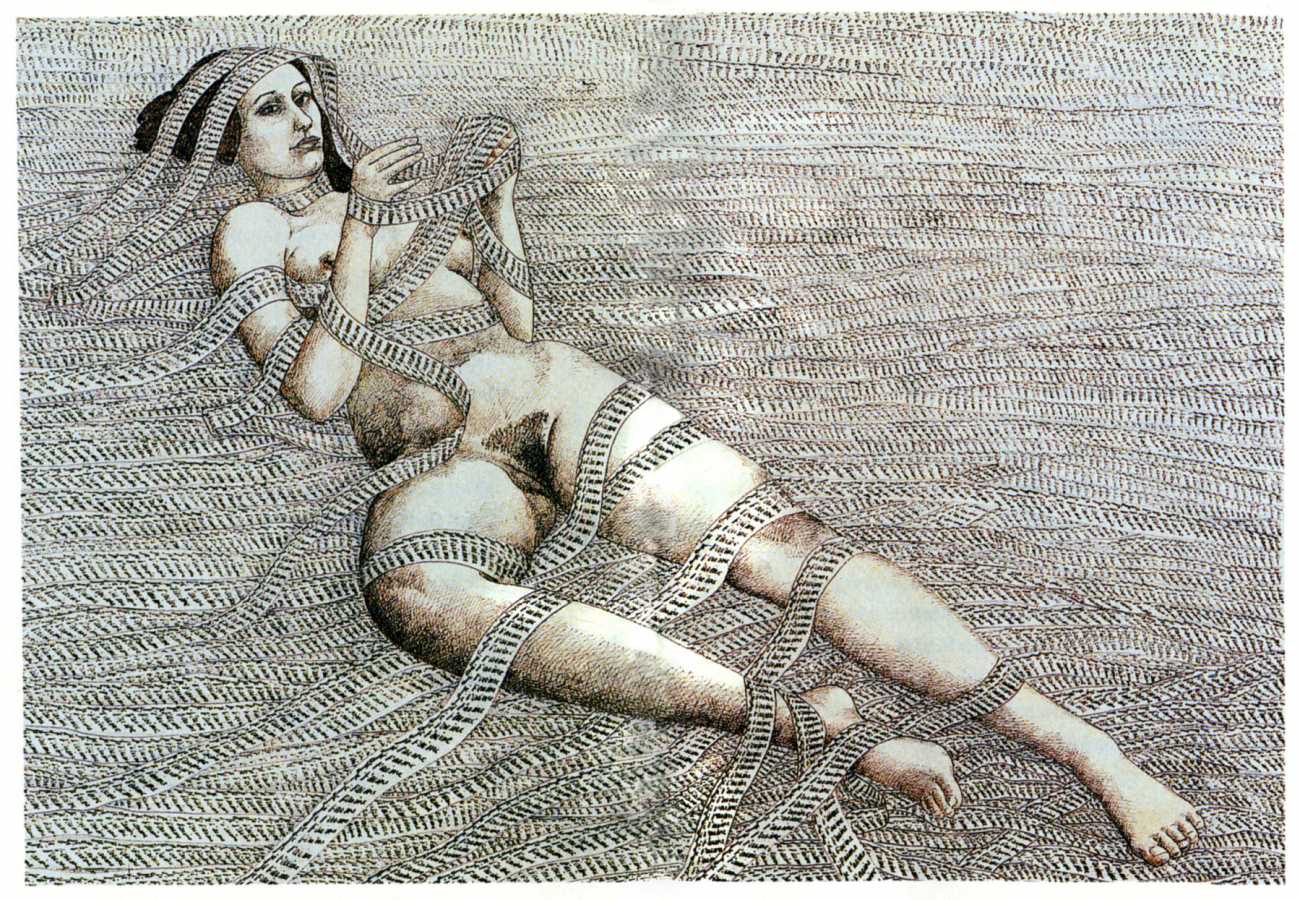 L’amour à voix haute (Love at Full Volume) is an interesting anthology on two counts, both for Roland Topor’s distinctive artwork but also because he introduces the extended poem as a compilation of all the things that he has experienced lovers saying in bed. Thus it may be the closest we get to his personal experience of sexual intimacy.