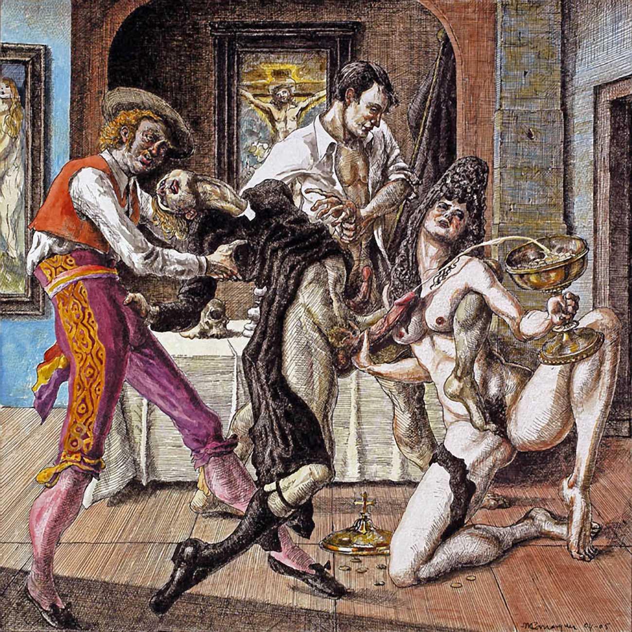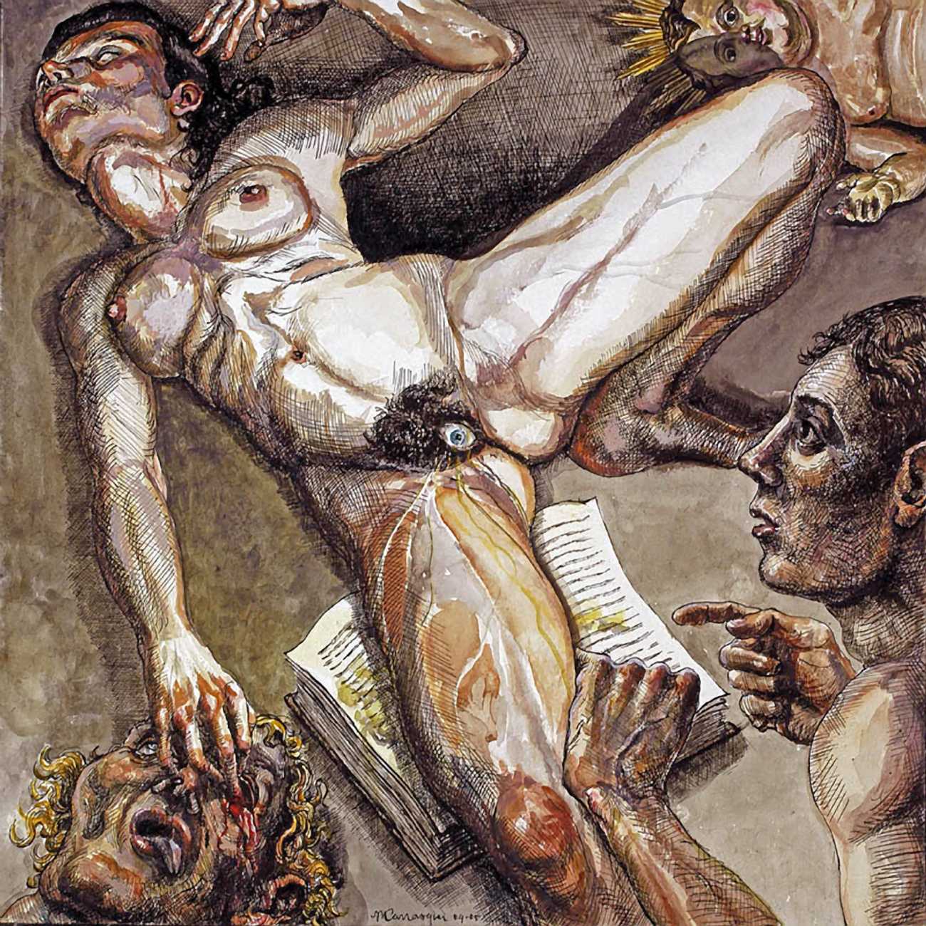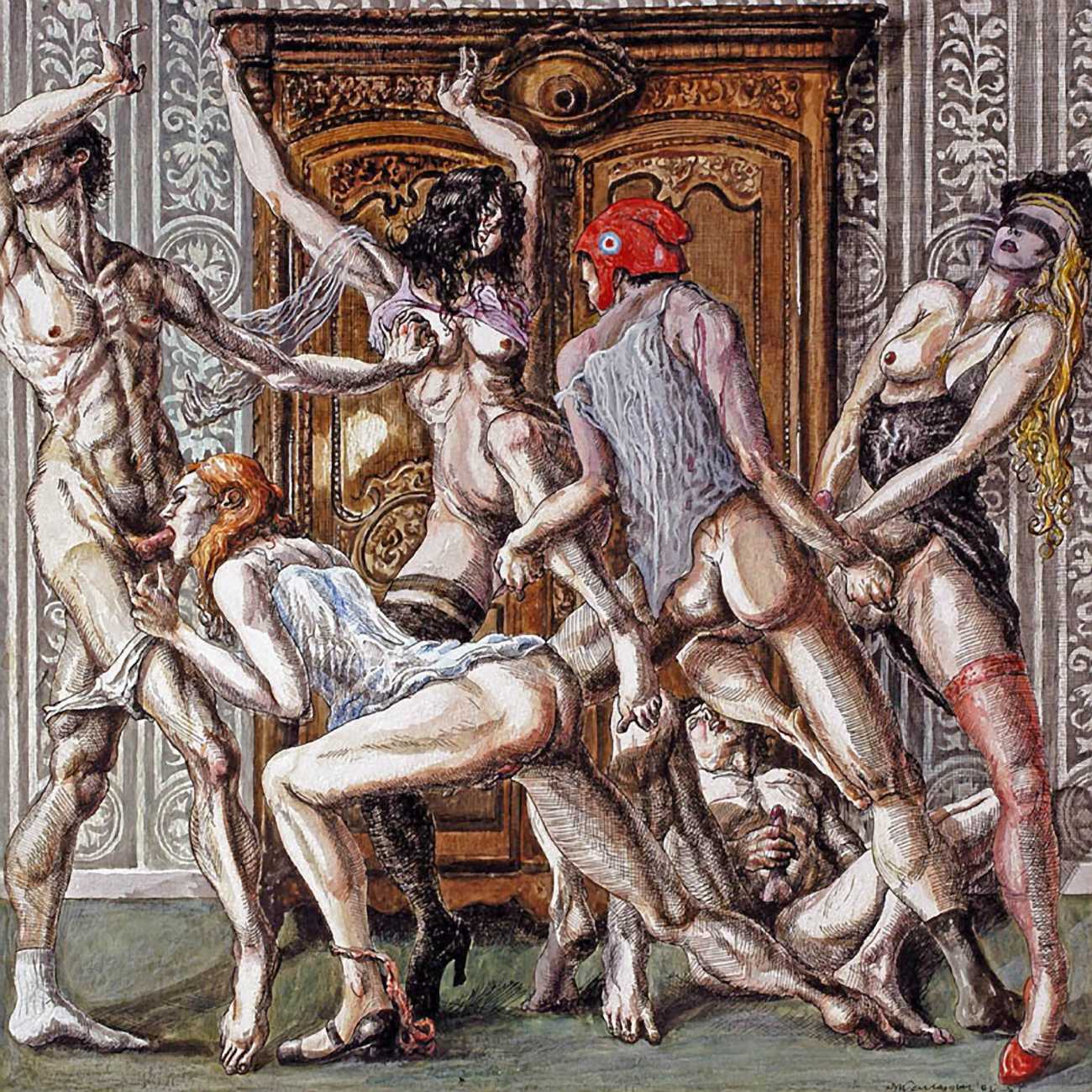 As with all Carrasquer’s work, his detailed illustrations for Histoire de l’oeil can be read at many levels, both as part of the narrative and in a wider socio-sexual context.