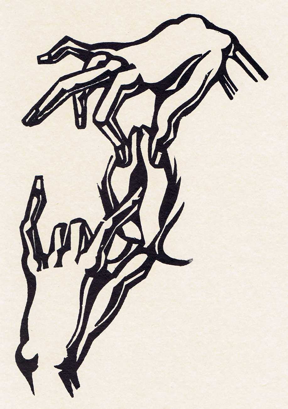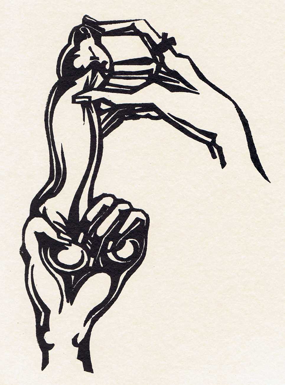 Sechs Linolschnitte (Six Lino Cuts) is probably the closest that Hoerle came to an erotic portfolio, but his strong clean lines leave us in no doubt that when these prints were made sex was very much on his mind.