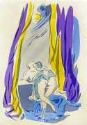 ‘Liebesfreude’ means ‘The Joy of Love’, and this collection of brightly-coloured prints by Naager show that his personal and financial setbacks had not resulted in complete disillusion. In many ways they had had the opposite effect, freeing him to follow his first artistic love, that of making beautiful designs on paper. Using a similar technique of blocks of colour as he had earlier in his wallpaper designs, Franz Naager created compositions which are both erotic and aesthetically ageless.