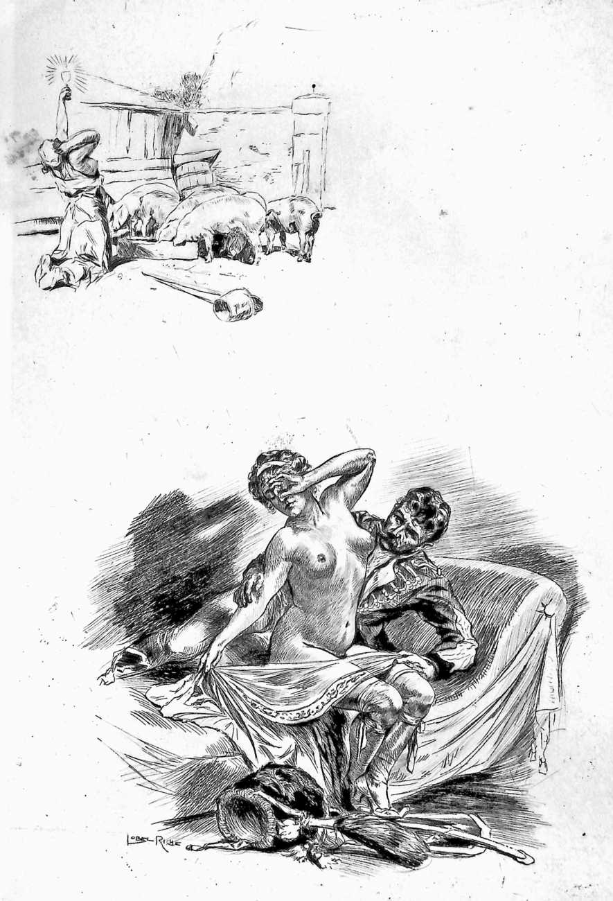 The cruel imagination of d’Aurevilly clearly appealed to Alméry. As Henri Babou writes in the introduction to his 1929 study of Lobel-Riche, ‘d’Aurevilly’s harsh, colourful, proud style well matches the artist’s imagination. Unlike tamer illustrators, he produces a vision which further increases the mystery of souls. Far from being concerned by their strangeness, he explores it and seeks to make the heroines of these unusual stories plausible. Of their demonic souls he shows us their all-too-human aspects.’