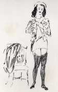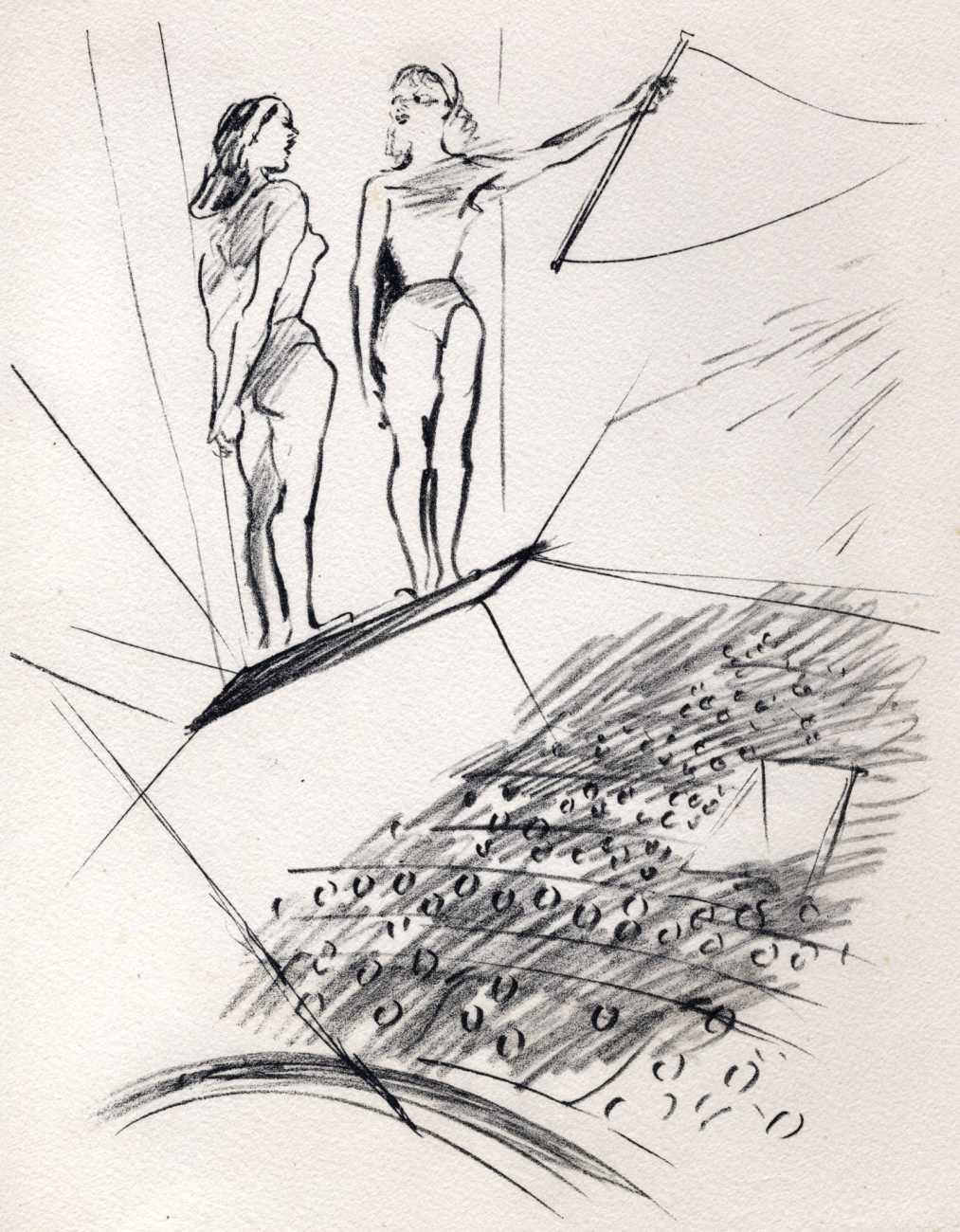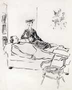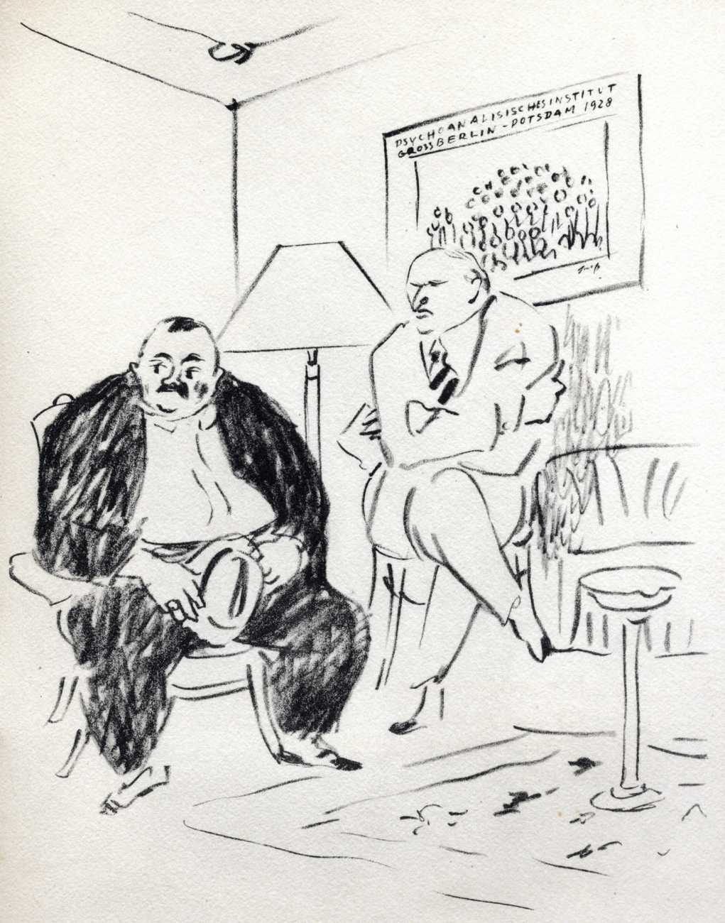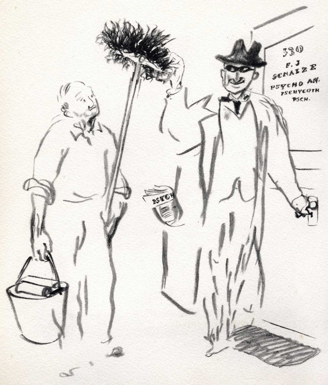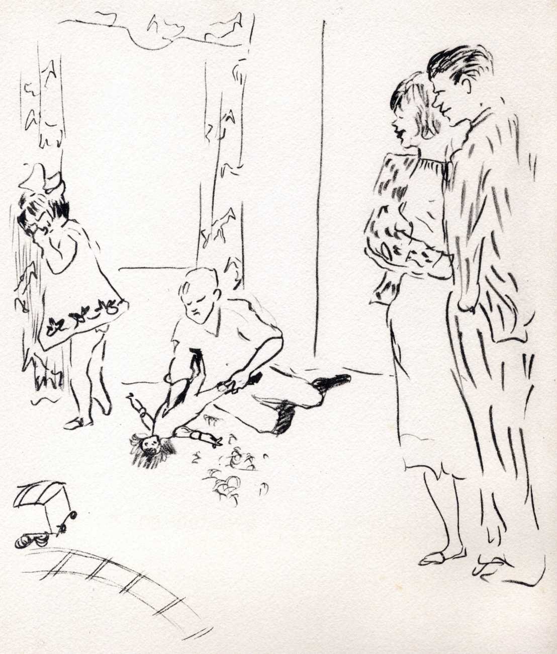 Like many people in the 1940s, Marcel Vertès was both fascinated and rather puzzled by the growing interest in psychotherapy, especially of the Freudian persuasion, among the professional classes. Complexes is his visual commentary on the phenomenon, featuring wise practitioners displaying their certificates and clients exhibiting their deepest anxieties – including the classic ‘what happened to my clothes’ scenario.