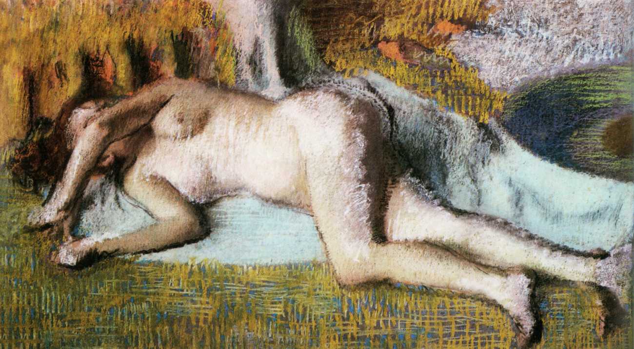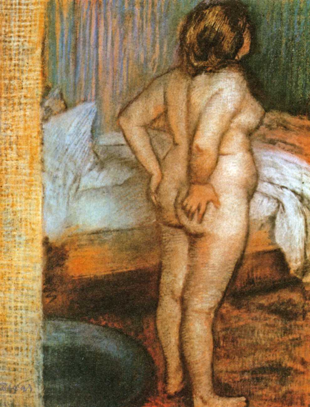 Here is a small selection of Degas’ lesser-known paintings and drawings, including (to the left) ‘Le bain du matin’ (Morning Bath) of 1887, and some of the surviving monotypes from the late 1870s.