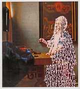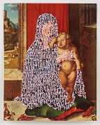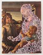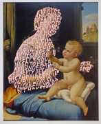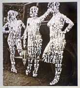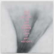 In ‘Women Words’, book, magazine and catalogue images of well-known works of art by male artists have the female protagonists covered with relevant pink texts. This has the twofold purpose of contrasting the ‘beauty’ of the original painting with the gritty reality of responses to real-world women, and of demonstrating how women and their contribution to real-world art has been painted out of cultural history.