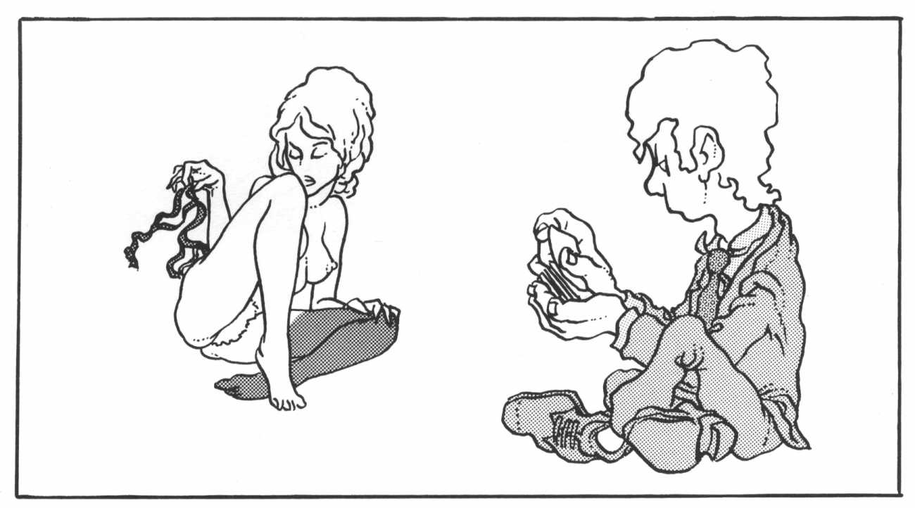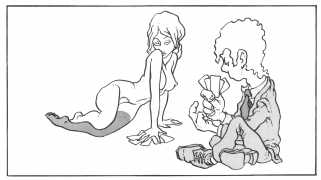 This rather cute little sequence forms the ‘frontispiece’ story of a large-format collection of original Barbe cartoon sequences published in 1983 by the French publisher Gentilly. An innocent game of strip poker sees the young woman beaten at every hand – except at the very end. What the coin toss signifies is the reader’s guess. Interestingly, this is one of the few Barbe cartoons to feature a naked male character.
