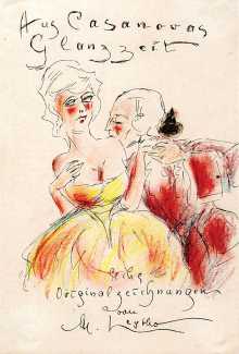 Aus Casanovas Glanzzeit (In Casanova’s Heyday) is Leytho’s colourful attempt to capture eighteenth-century Venice with lots of bright red and yellow crayon. The drawing is terrible, the colours garish, and the characters totally unconvincing, yet our unskilled artist still manages to convey a sense of over-the-top indulgence matching the famed lover’s exploits.