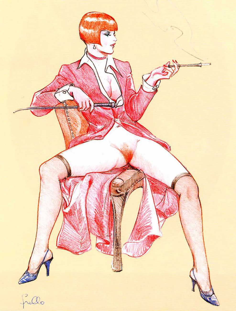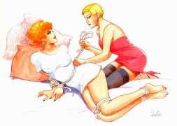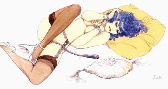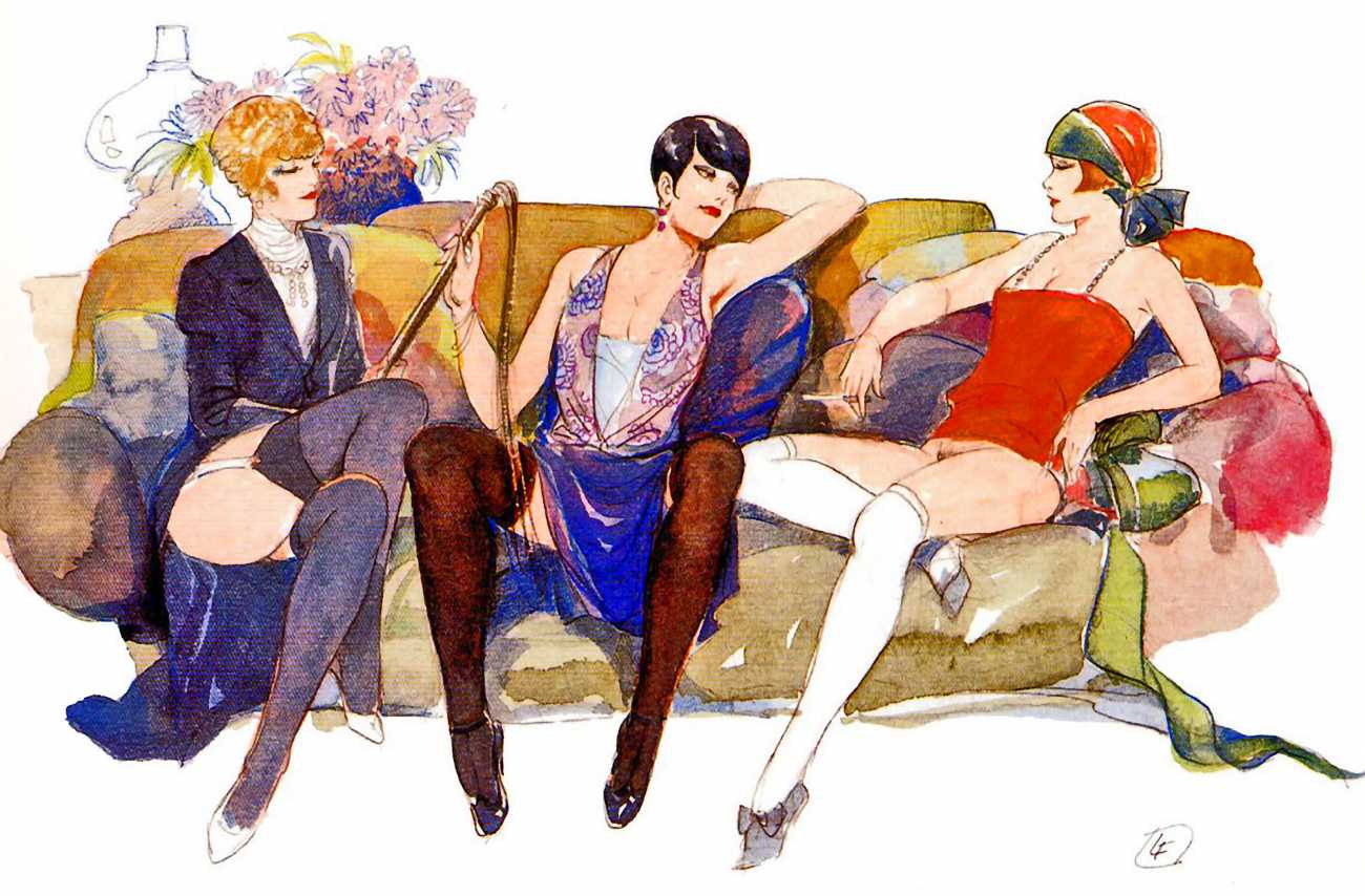 Bound to Please was one of two Frollo albums published in 2003, this one by Heavy Metal, his main publisher. It has to be said that there is little order and no narrative to the images, though there is a little rather unrelated text. Bound to Please does, however, include several of Leone Frollo’s best-known images, including the much-reproduced three flappers on a settee.