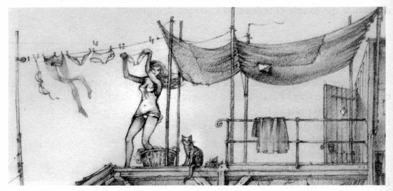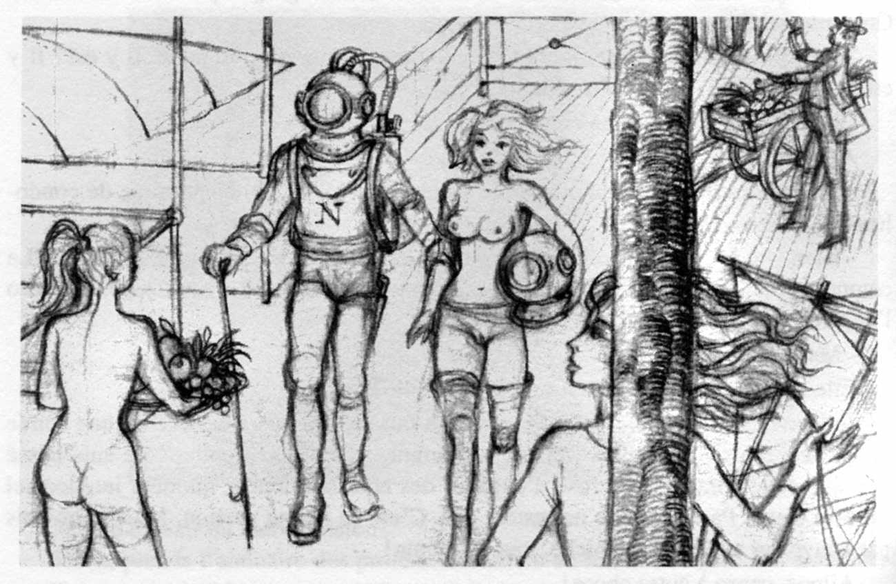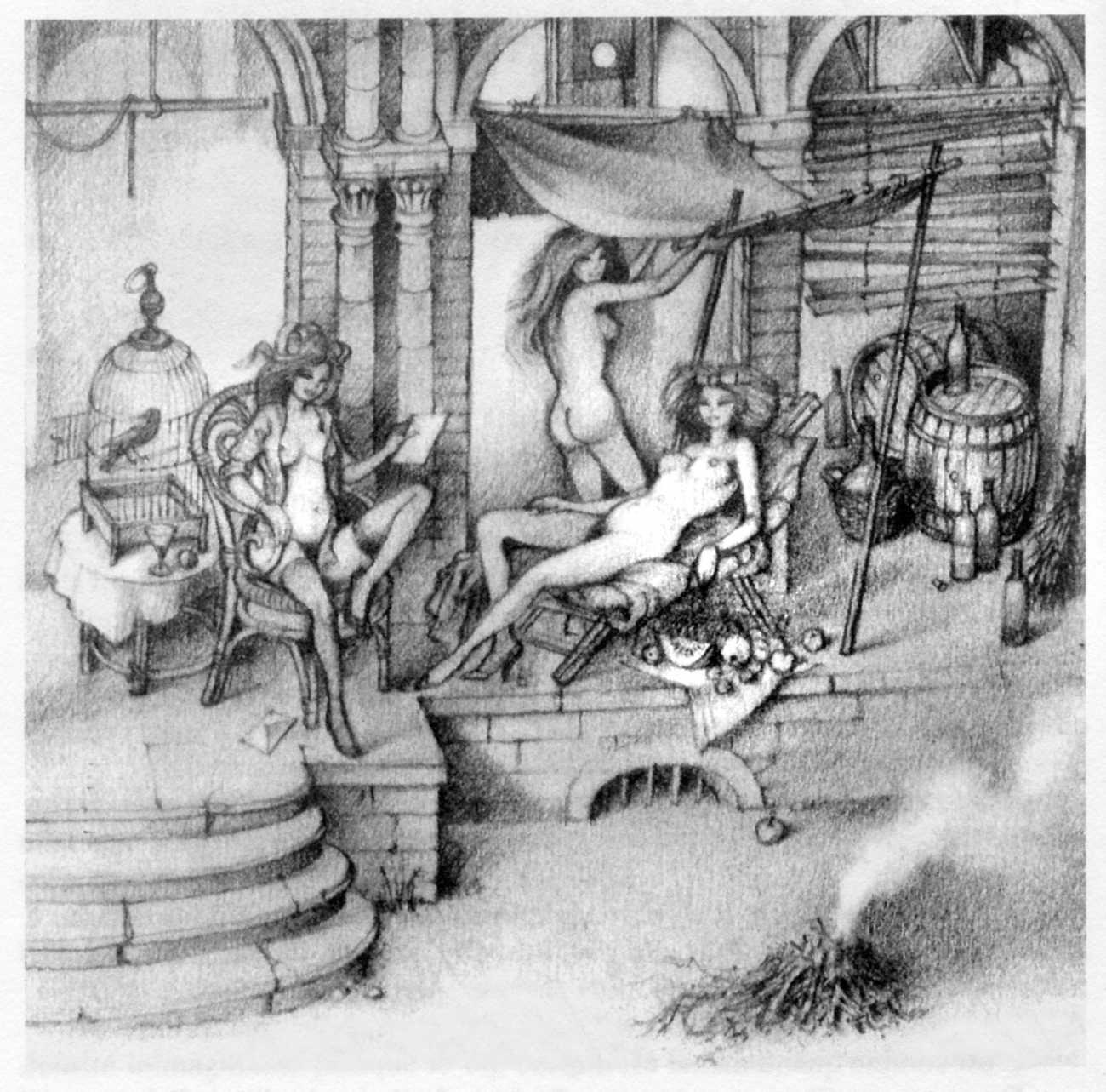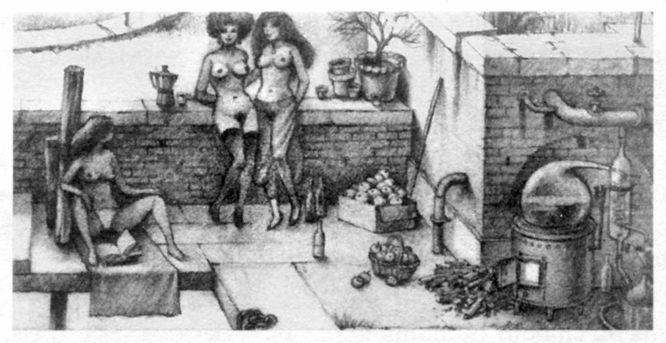Babel’s trademark pencil drawings are the perfect foil for Lucas’s witty tales, full of beautiful young women wearing very little going about their daily lives, hanging out the washing, eating together, stroking the cat, sitting on the toilet. And on closer inspection they are surrounded by a range of objects both familiar and strange, from broken railings and woodstoves to chemistry equipment and diving helmets.
