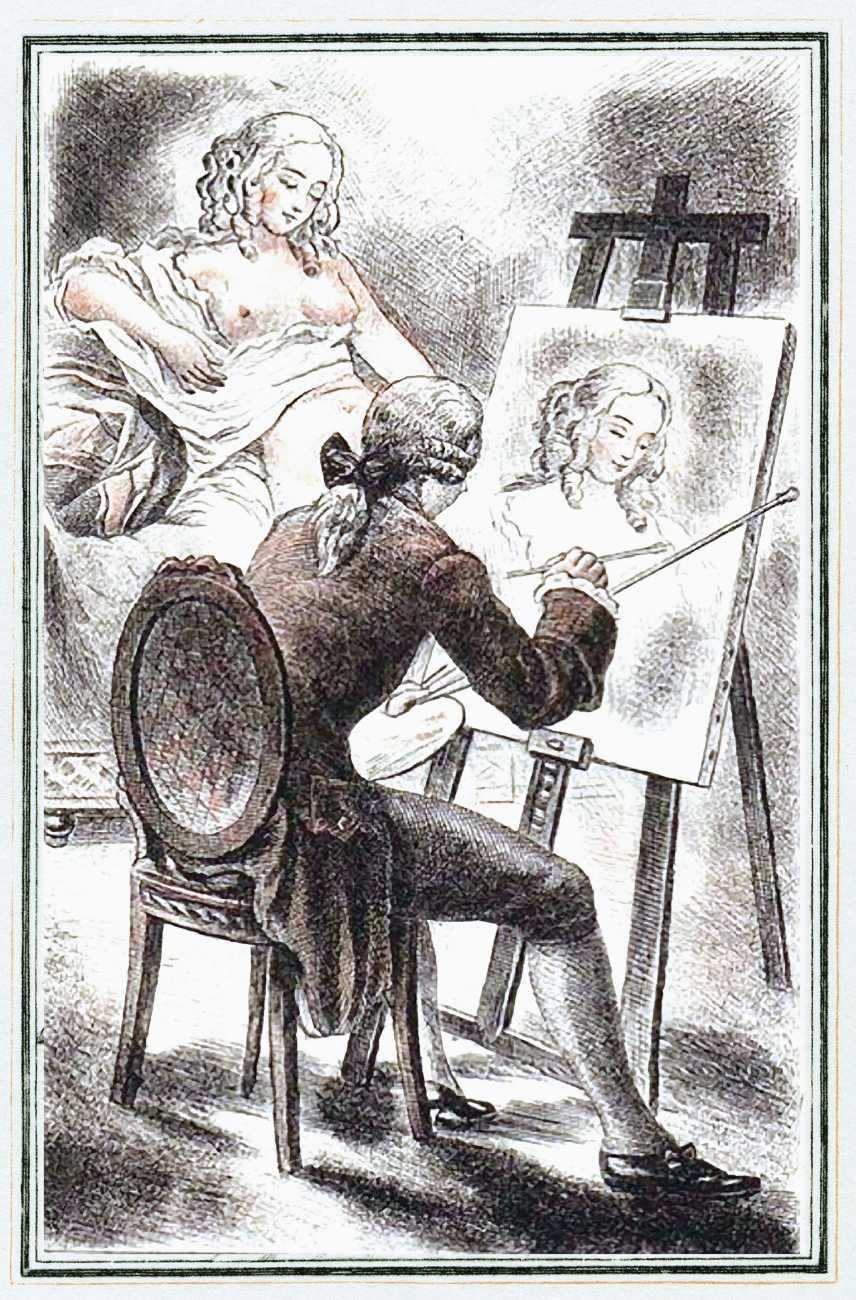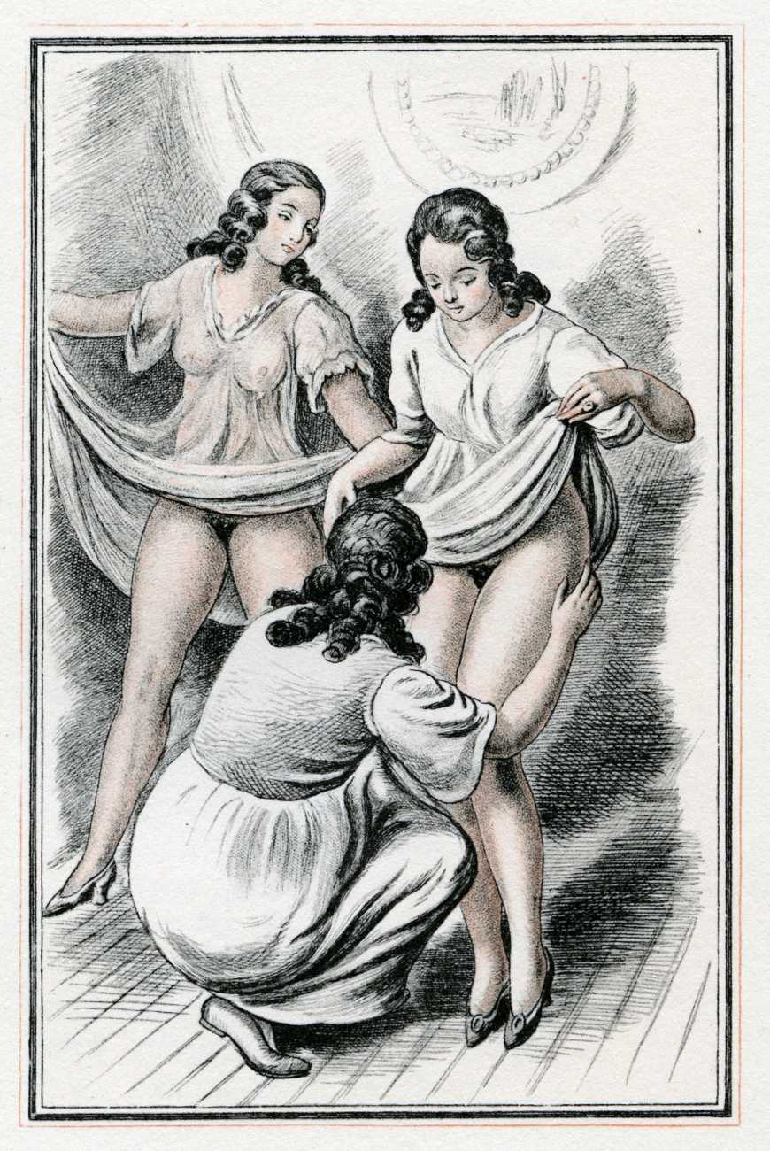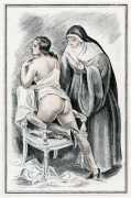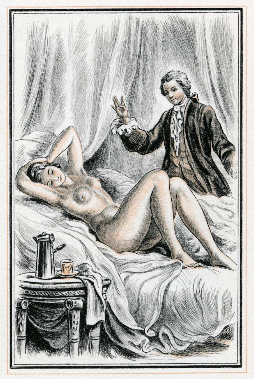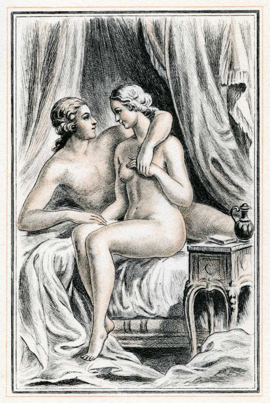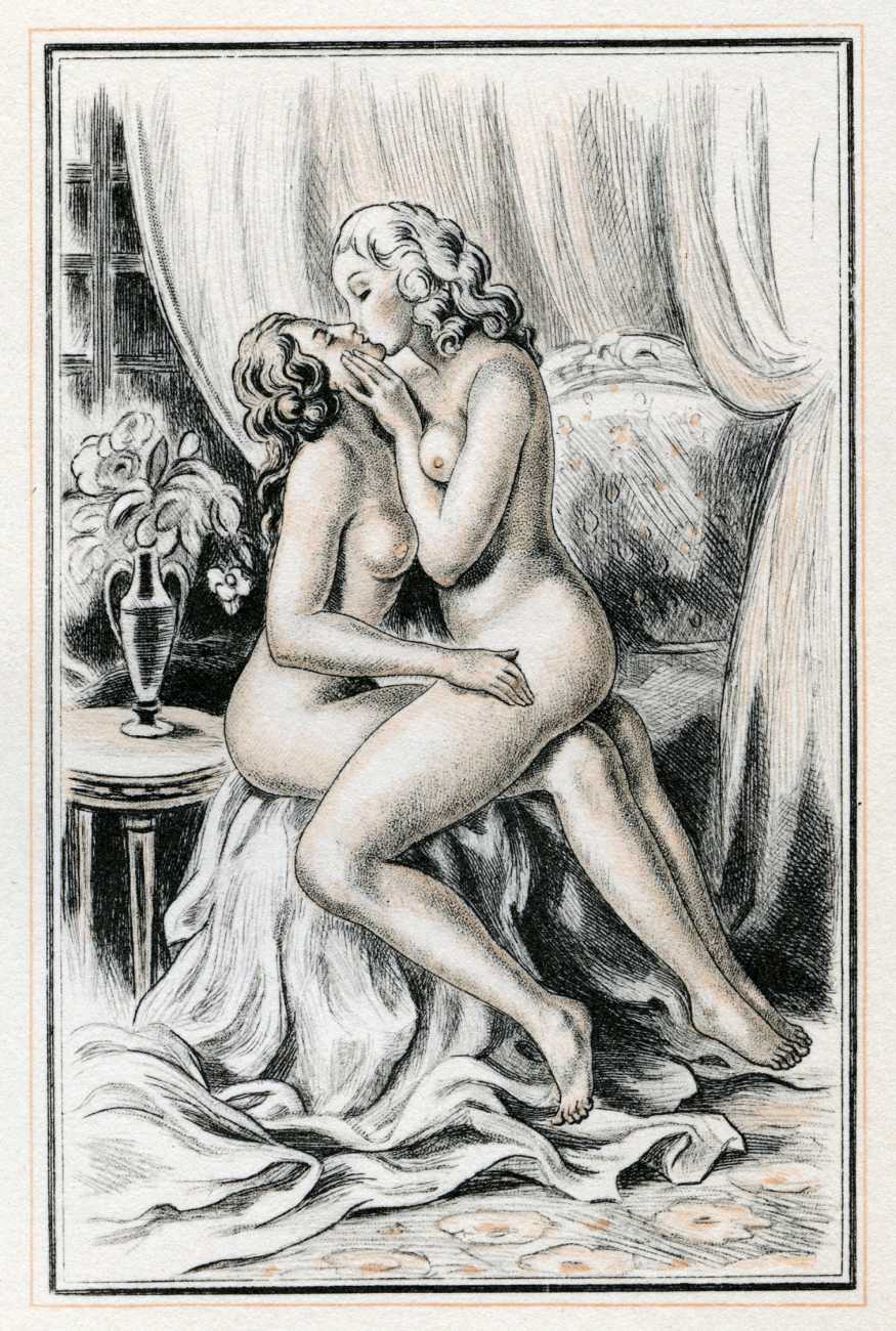Vénus dans le cloître is another text which lends itself well to an illustrated reissue, in this case by Le Livre du Bibliophile in 1962, a very late date for such an ‘antique’-looking volume. Gandon’s two-colour engravings show him to be a skilled illustrator, a fine judge of breast and female bottom.