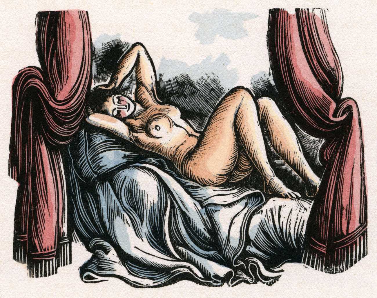 Briffaut commissioned Pierre Gandon, who had still to become recognised as an engraver of exquisite miniatures suitable for stamp designs, to produce a set of coloured woodcuts for Voyage en Limousin. The result was some of the best book illustrations produced by this multi-talented artist.