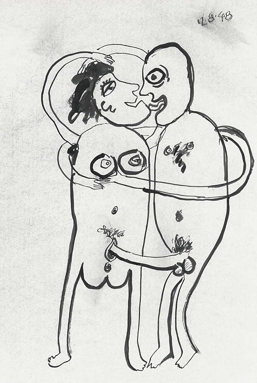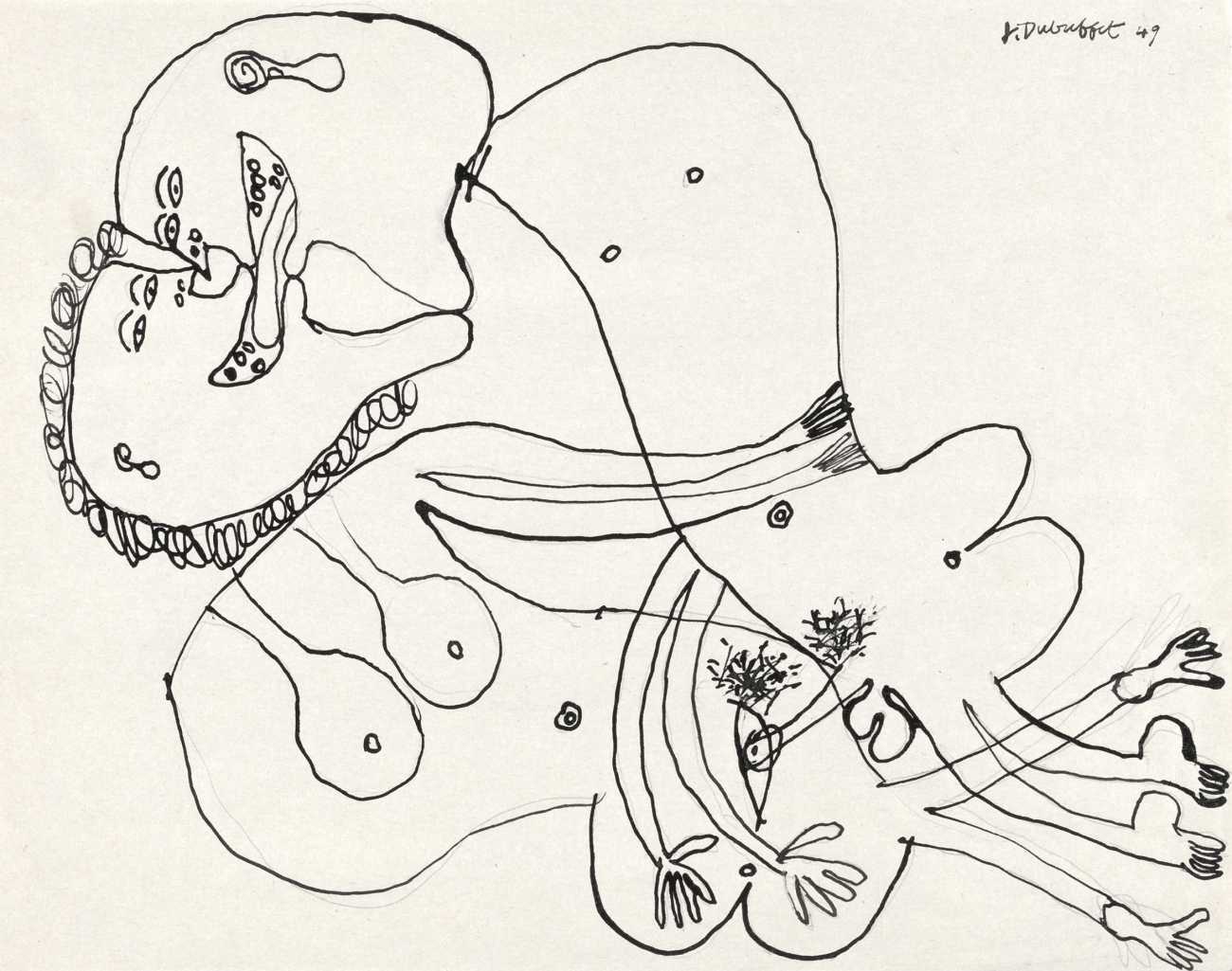 More immediately shocking, however, at least to its 1950 readership, was his blatant sexual imagery. For years Dubuffet’s work had been compared to mud, dirt, and excrement, but this is the only really ‘dirty’ book he made, along with a number of related drawings, and it is quite possible that he made both book and drawings to prove that he could be as explicitly ‘dirty’ as his critics regularly suggested.