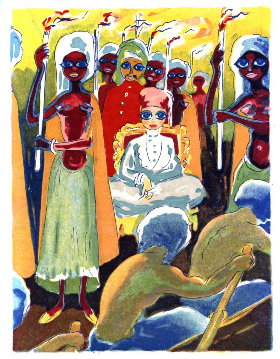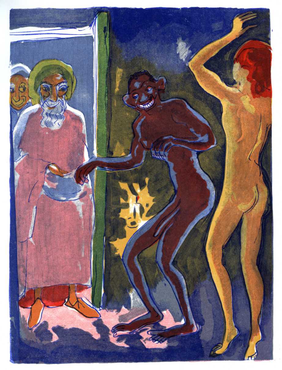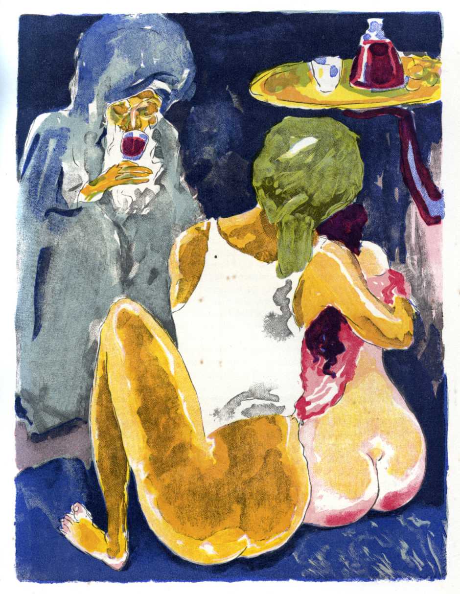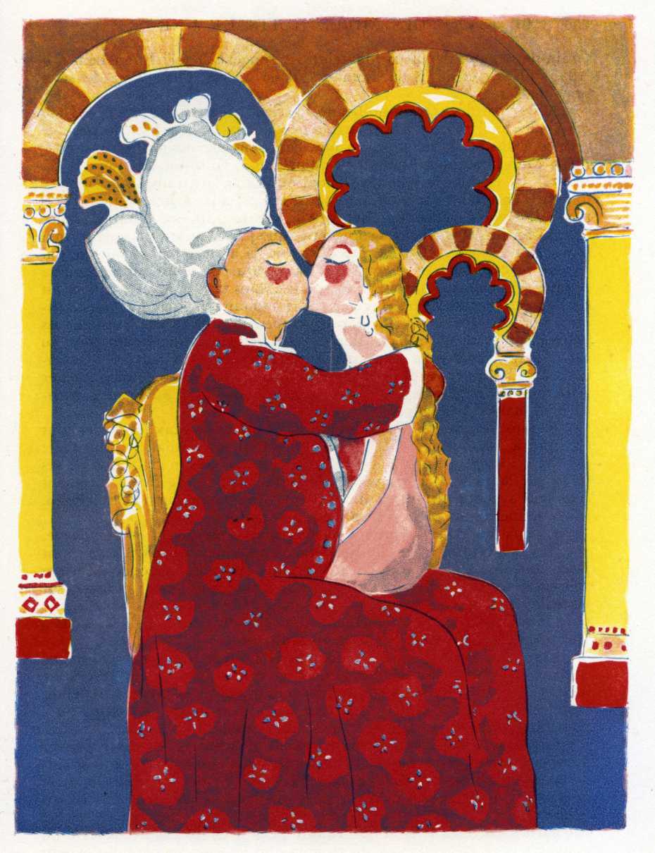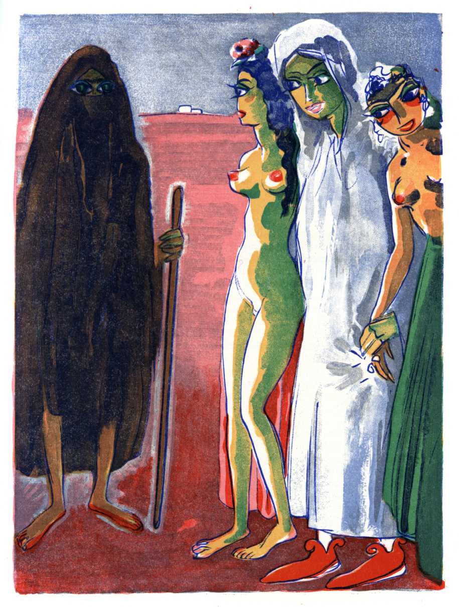Kees van Dongen’s illustrations are as idiosyncratic as the text, displaying a colourful set of characters which too often verge on the stereotypical and potentially racist. But it is important to remember that they were produced seventy years ago, and at the time both his French readers and the inhabitants of the oriental places they wanted to visit pandered to that view of culture. Viewed through the lens of the intervening period, van Dongen’s colourful images are still full of vitality and imagination.