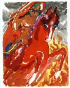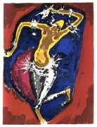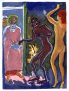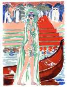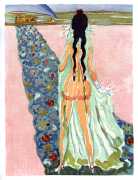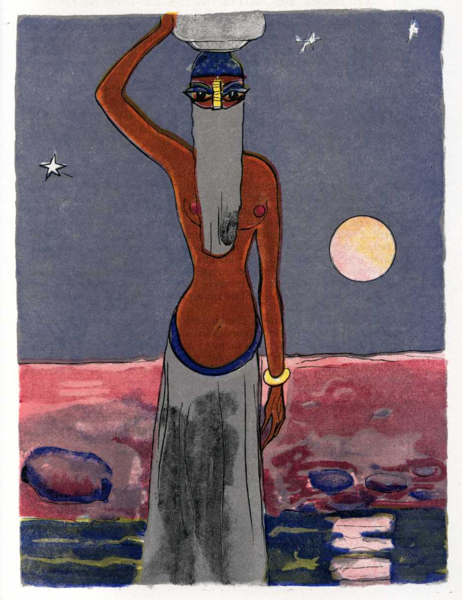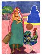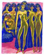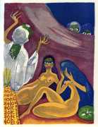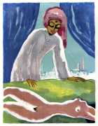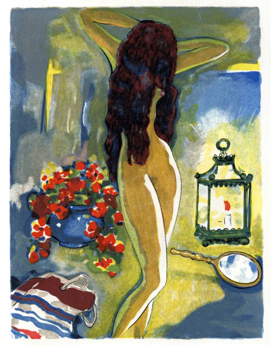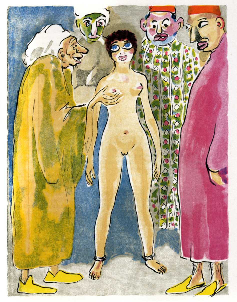 The Gallimard commission for eighty illustrations to accompany Le livre des mille nuits et une nuit (The Book of The Thousand and One Nights) was the last major portfolio that Kees van Dongen produced, and the colourful paintings beautifully capture his trademark style. In the winter of 1910–11 van Dongen had visited Spain and Morocco, the first time he had been able to observe Moorish architecture, with its palaces and mosques with their fascinating minarets, the contrast of dark passages and dazzling white walls baked by a scorching sun, and that experience is evident in this portfolio.