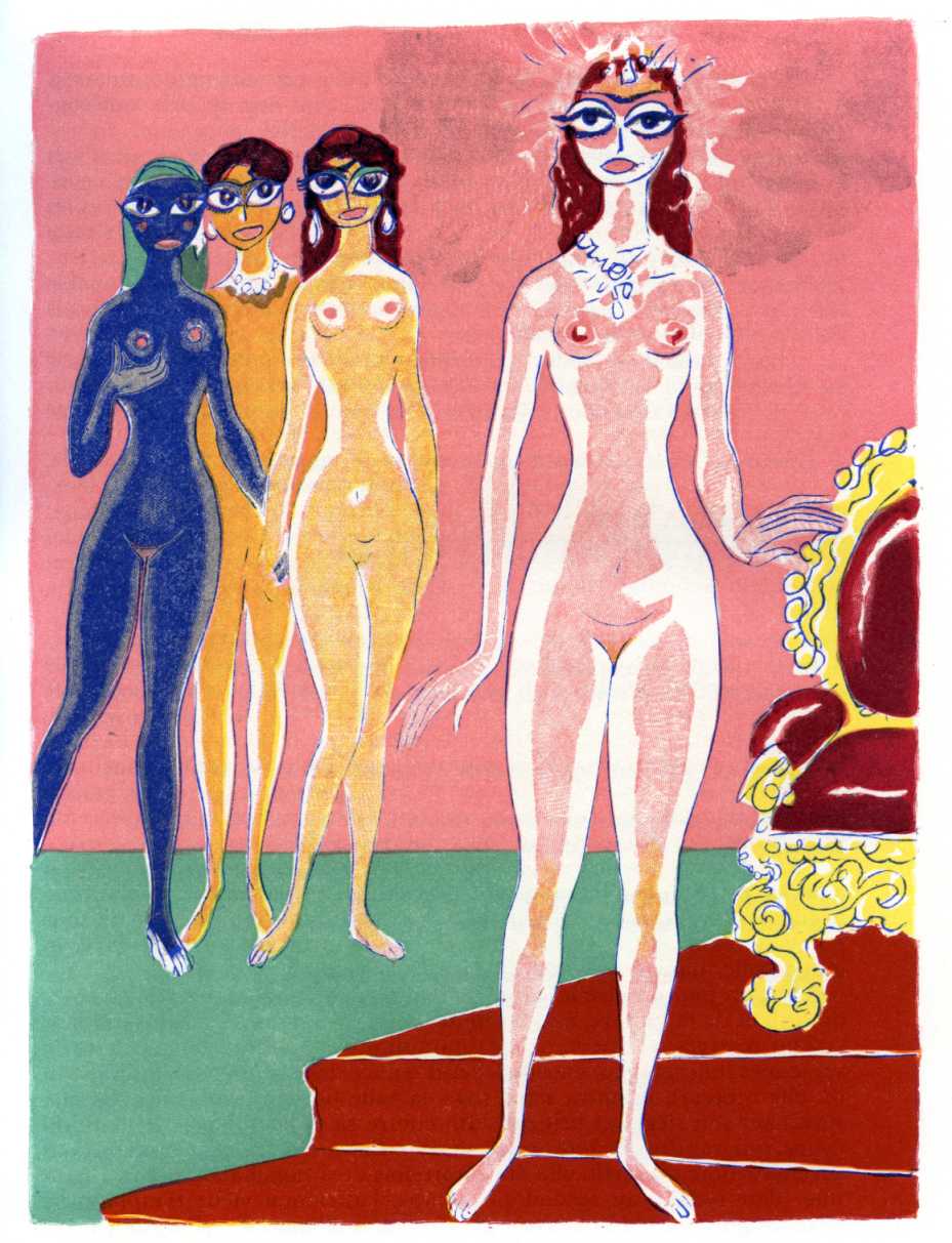Of the eighty plates, we have reproduced half, those which tend towards the more erotic stories in the book.