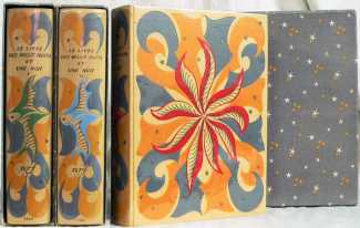 The Gallimard Le livre des mille nuits et une nuit was published as a three-volume boxed set with an embossed van Dongen designed cover to each volume; the slipcases and endpapers feature a star pattern.