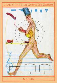Genet’s La galère (The Galley) is a long poem about a virile murderer who is transformed into a tragic ‘queen’ in a fantasy involving a galley ship transporting prisoners to a penal colony in Guyana. It was first published in 1947 by the Paris bookseller Jacques Loyau in a small limited edition, with six engravings by Leonor Fini, which you can see here.