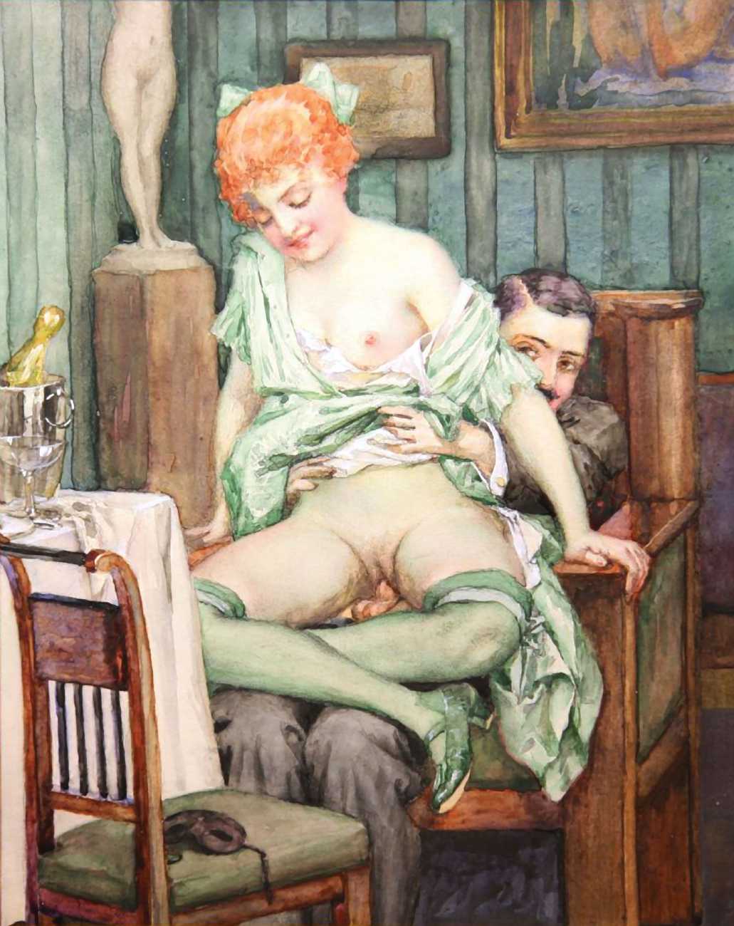 Like many other figurative artists of the period, Auer had a thriving sideline in provocatively naked and semi-naked women, often using allegorical and literary themes as a pretext for showing a daring amount of flesh. And when a wealthy Zagreb client requested a little more, he was not averse to producing explicitly sexual canvases, such as this series, Mlada Ljubav or Young Love.