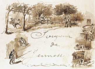 The plot thickens, as some of the printed sheets assumed to have been modestly covering the drawings bear the imprint of the Paris printing firm Aubert, who were located in Place de la Bourse in the first half of nineteenth century, and ceased business in 1853. Of course the pages they printed would still have been around in 1915, but it seems that both the date and Parisian origins of the sheets are designed to help ‘age’ the drawings.