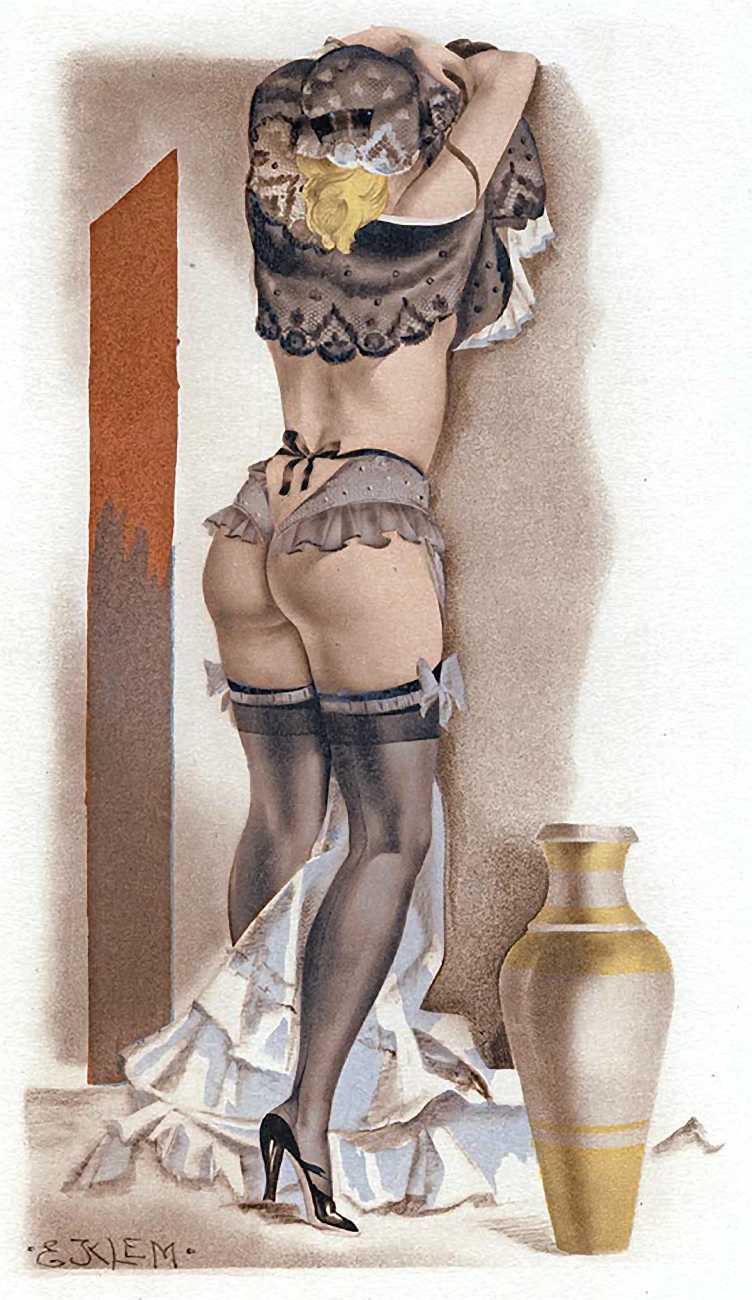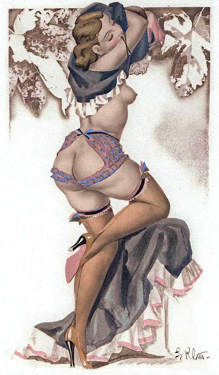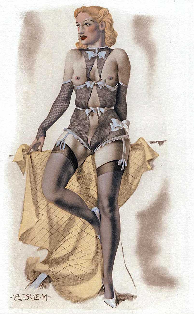 This portfolio of 1930s beauties in (and out of) a compelling range of erotically fashionable undergarments was produced as a set of prints, now rarely found complete. In Les plaisirs de la chair (The Pleasures of Flesh) Klementieff combines his skills as a fashion artist with his imagination as an early fetishist to create a wonderful range of possibilities that would work just as well for a kink party today as they might have eighty years ago in Gay Paree.