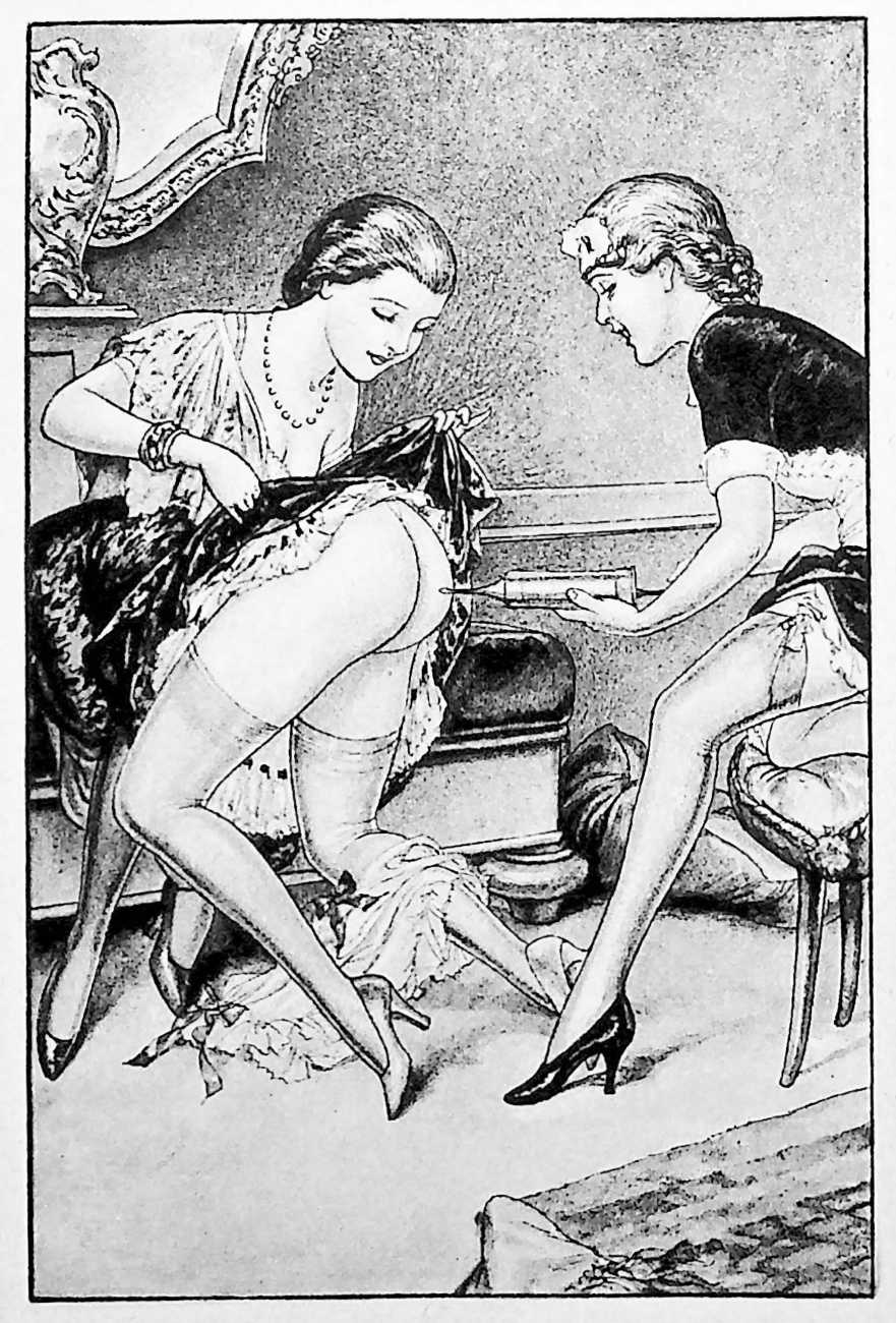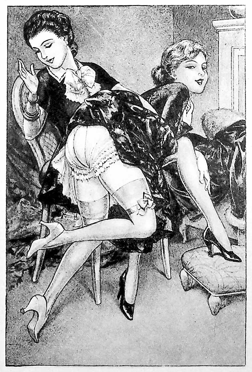 The ten plates depict the undersides of various young women, their ‘enlightenment sessions’ and experiments in spanking. The text is light and frothy, a series of accessible scenes of undressing and mild debauchery.