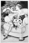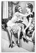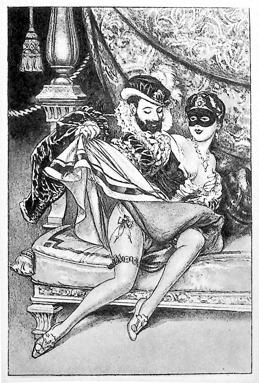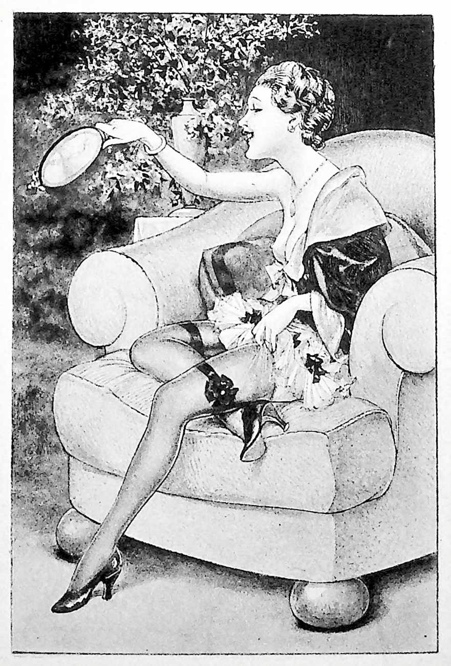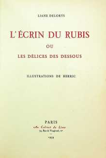 L’écrin du rubis, ou les délices de dessous (The Jewel Case, or the Delicacies Underneath) is one of several similar volumes by ‘Liane Delorys’, he pen name of a woman whose real name was Donville and who also wrote under the pseudonyms Liane Lauré, Liane de Lorys, Liane de Lauris and Lucette de Chatay. The jewel case is the embroidered satin or cotton fabric which hides the feminine jewel from the curious, for which Herouard, using his Herric pseudonym, is the ideal illustrator.