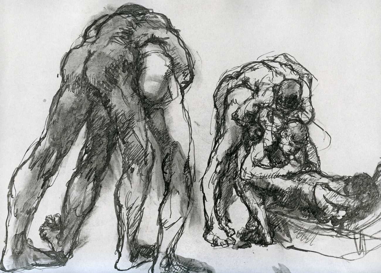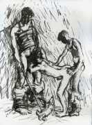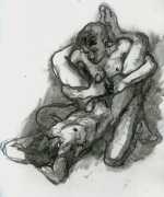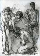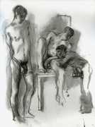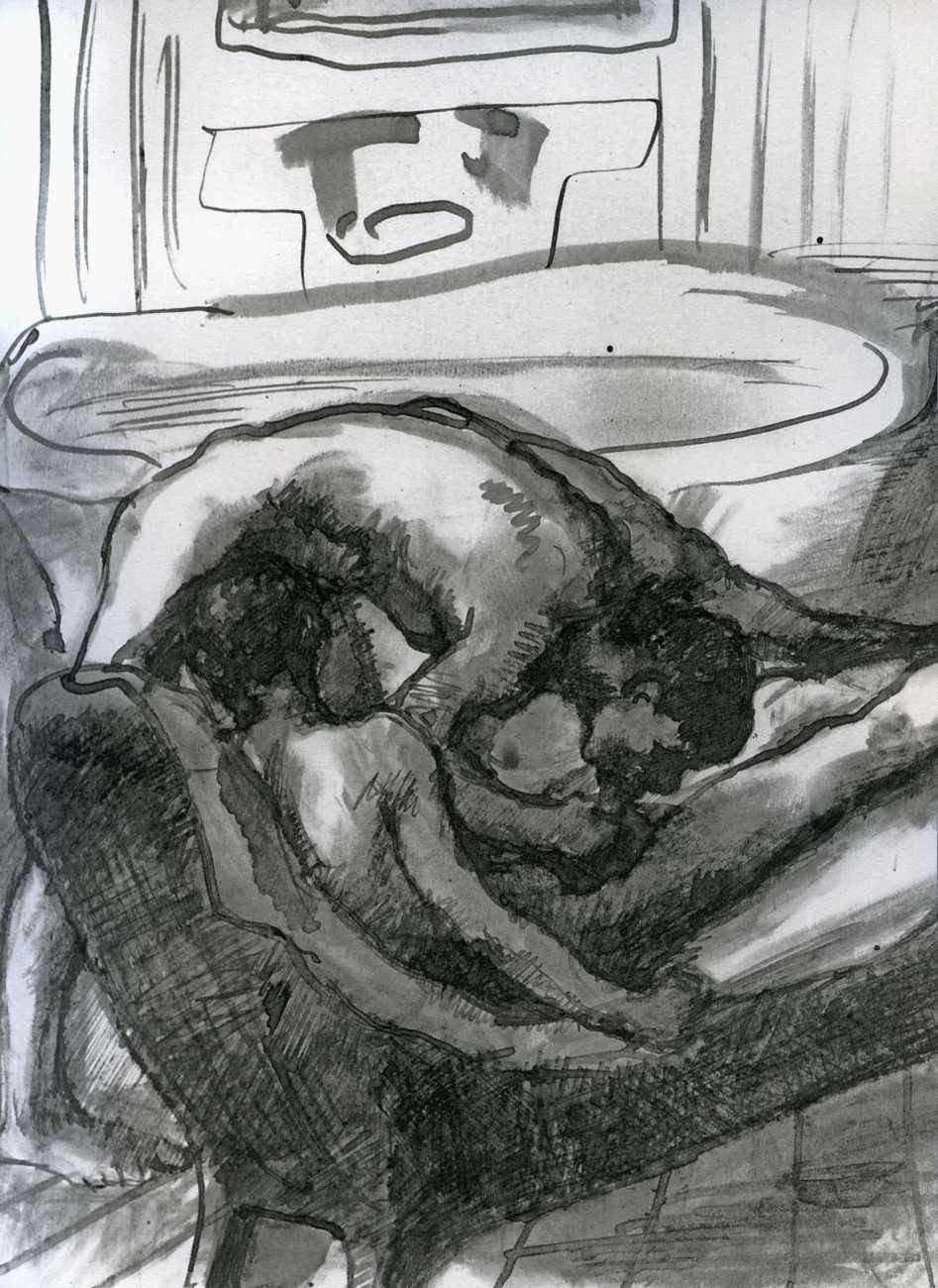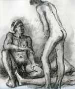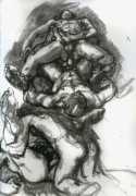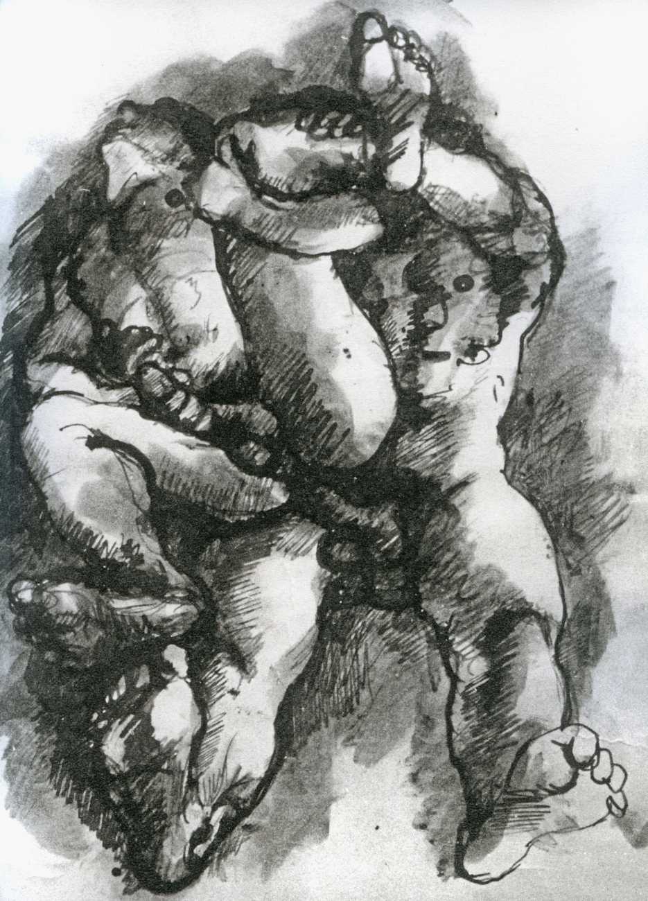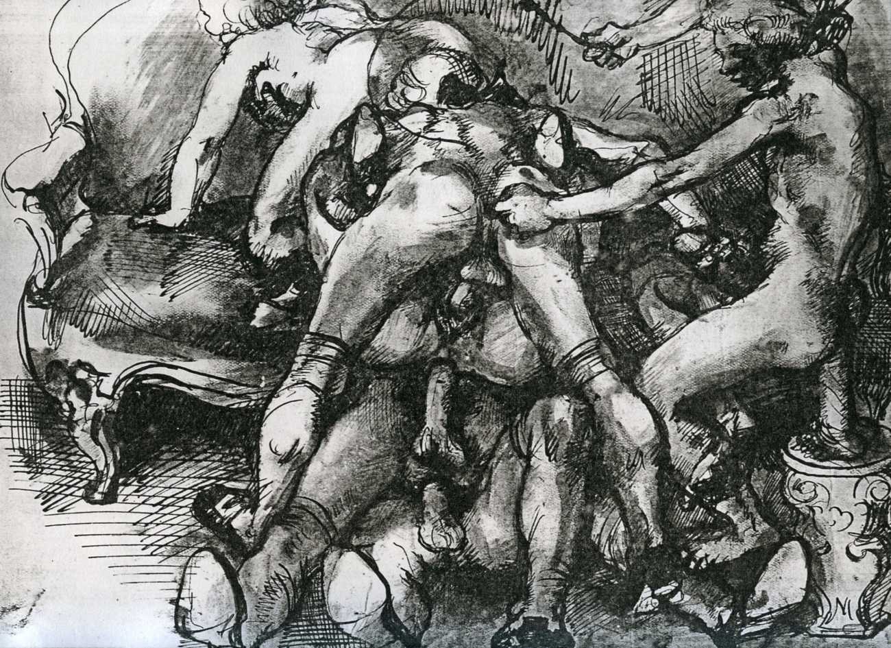 The third group of drawings depict explicit sexual acts between men, many in groups and some in acrobatic couplings that require the magic of art to be accomplished. In the 1930s the drawings become more powerful, more strongly drawn and more passionate in feeling. This may have been related to the entry of Charles Henri Ford into the painter’s life, who was well aware of the importance of sex in people’s lives. This was an environment that encouraged Tchelitchev to experiment, observe, imagine and explore the world of his own sexuality.