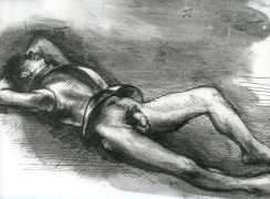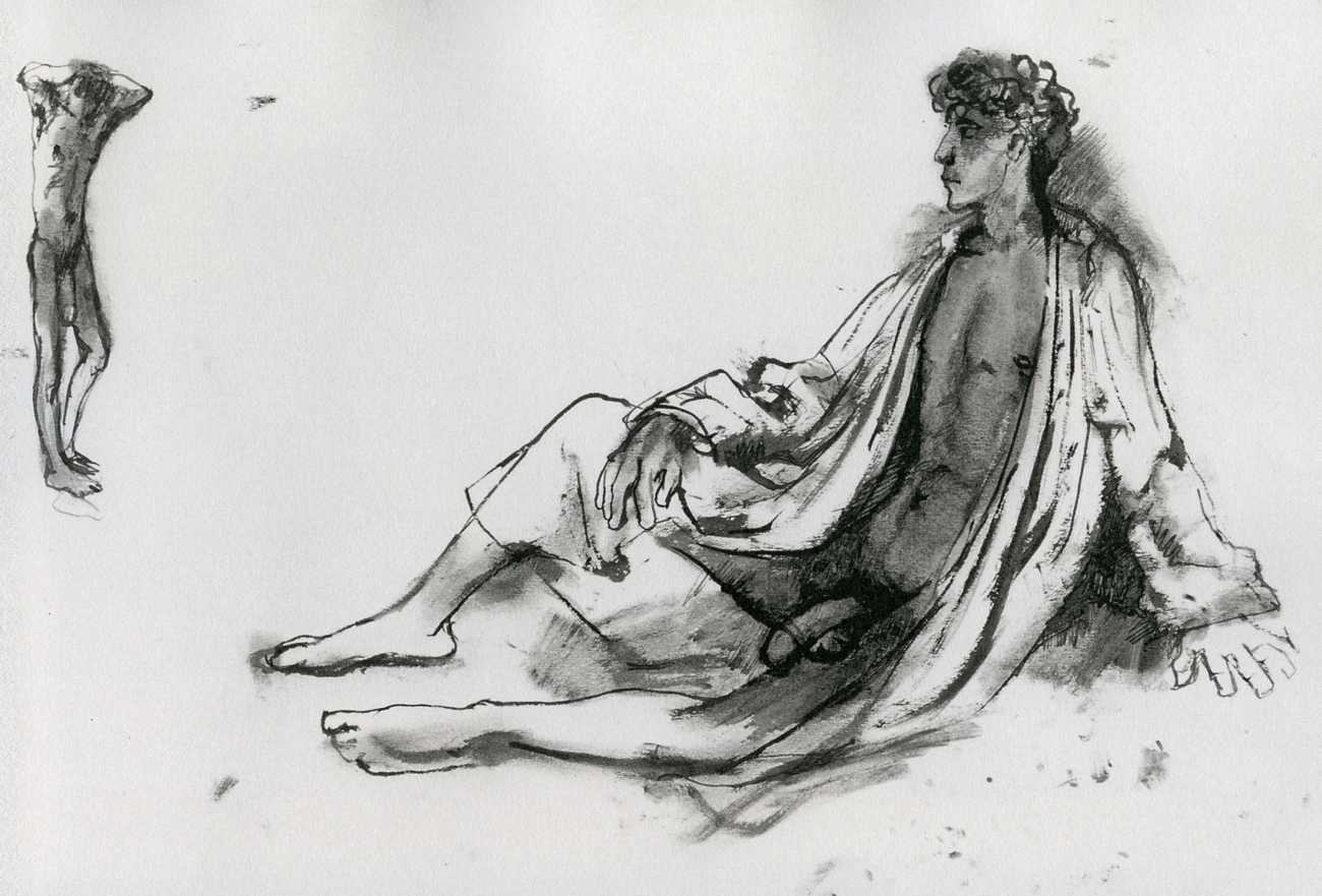As David Leddick writes in his introduction to the 1999 Elysium collection of Tchelitchev’s homoerotic drawings, ‘The hidden strength of the muscular male body in repose, the regenerative force inherent in the penis, the beauty and flow of the male body that was largely ignored by a world that concentrated almost exclusively on the nudity of the female body, are all focused in these drawings. Tchelitchev’s male nudes live in a dream world, a dream of fulfillment, a dream free of guilt, a dream where the body exists for beauty and beauty has its purpose. These are dreams of consummation, dreams of fleshly delights, the very personal erotic dreams of a great artist.’