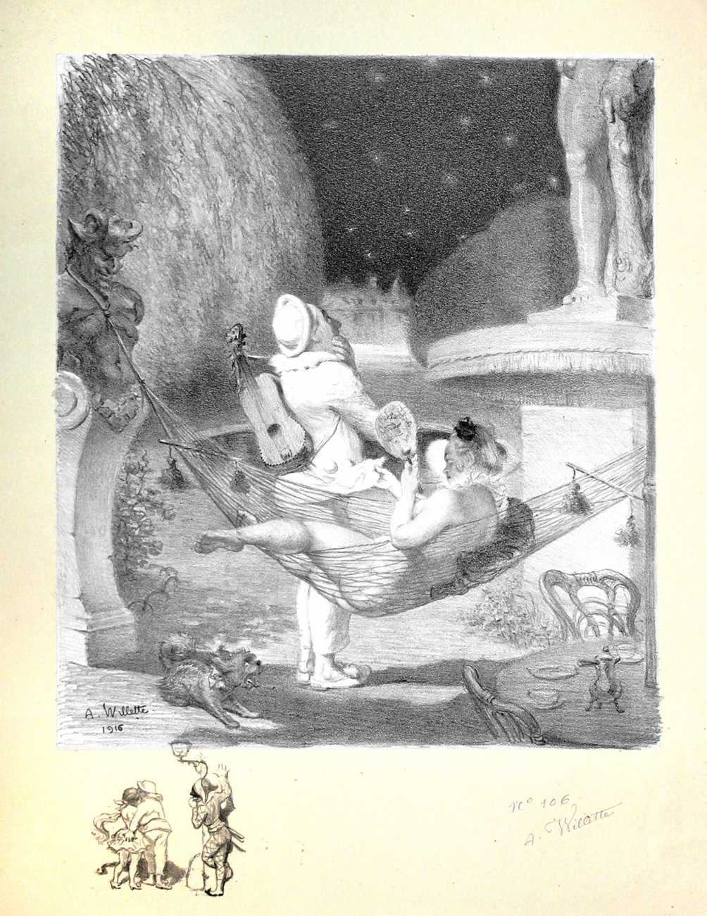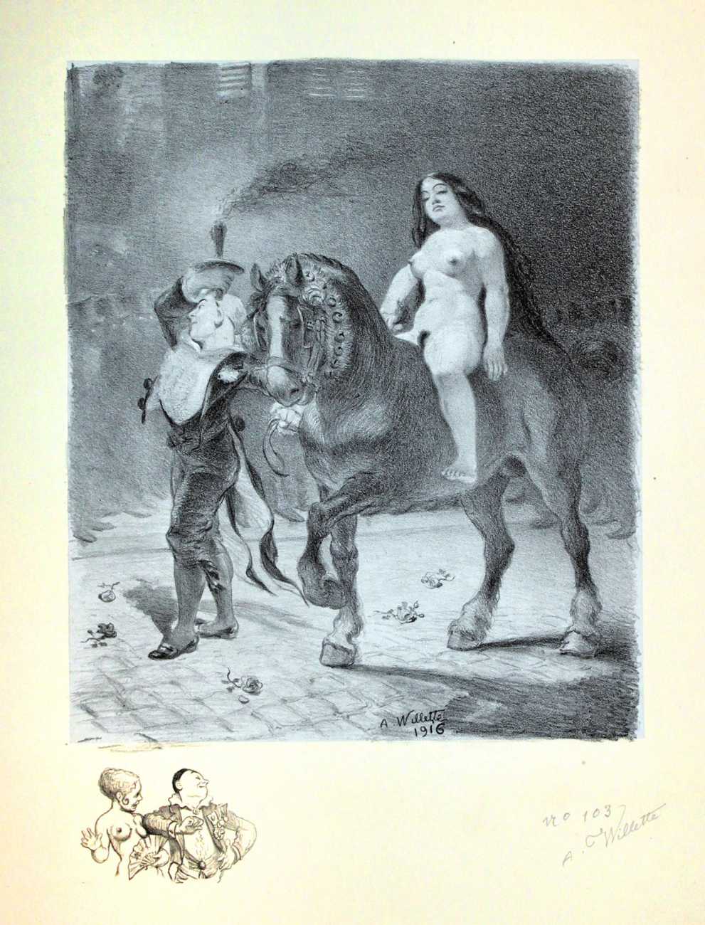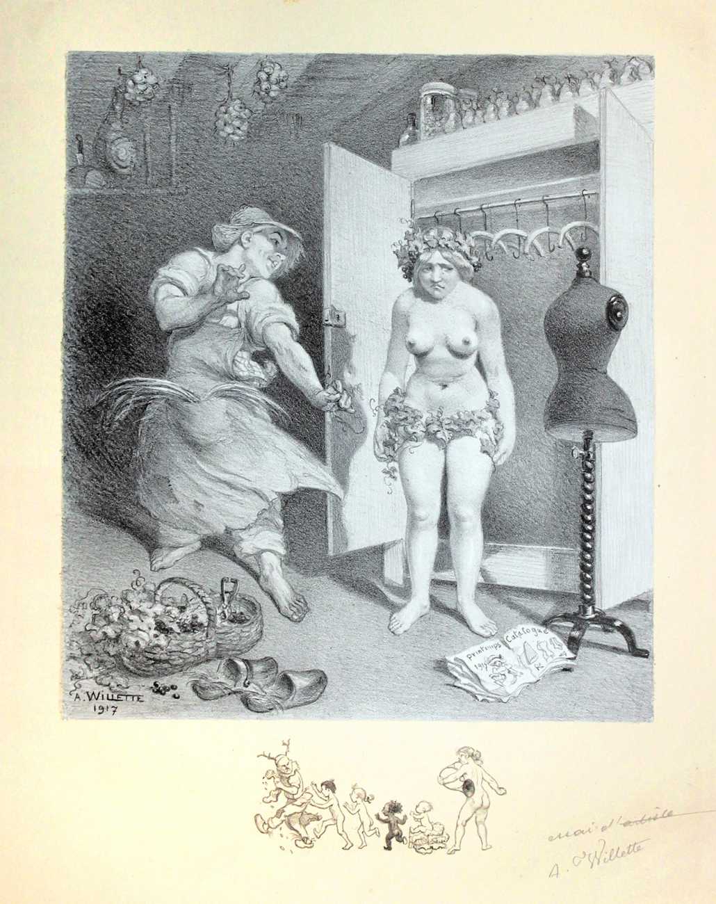 Apparently the only complete portfolio of erotic prints that Willette created, Les péchés capitaux (The Capital Sins) was created over an eleven-year period between 1906 and 1917, and published in its entirety in 1917 in a printed binder.