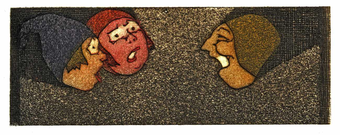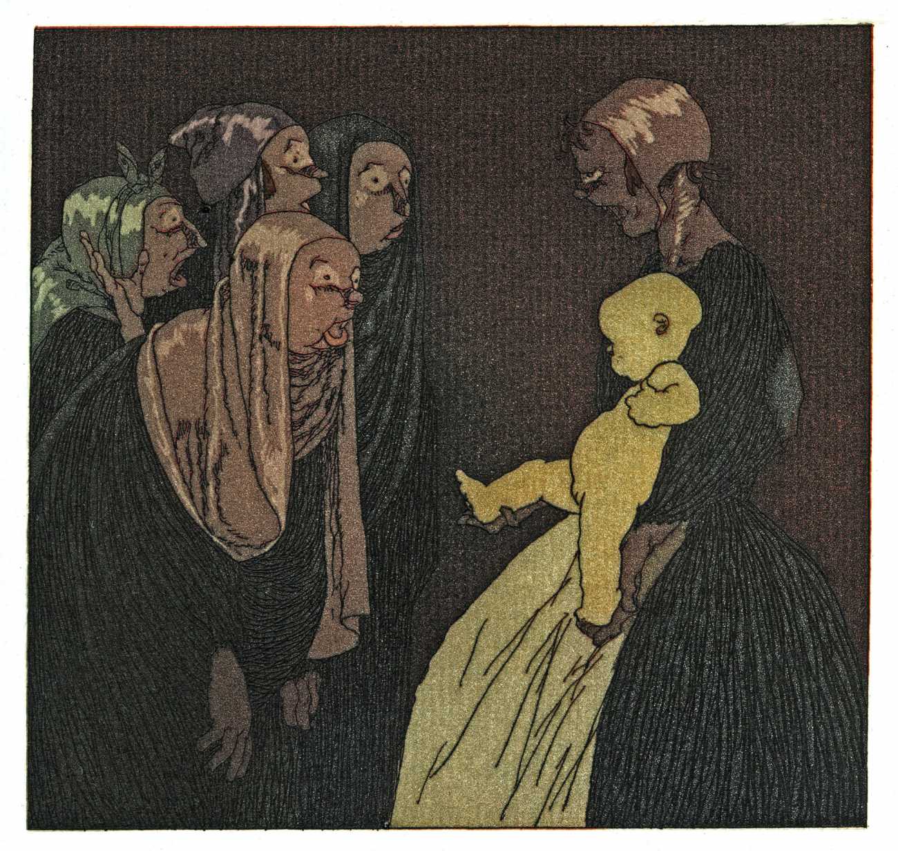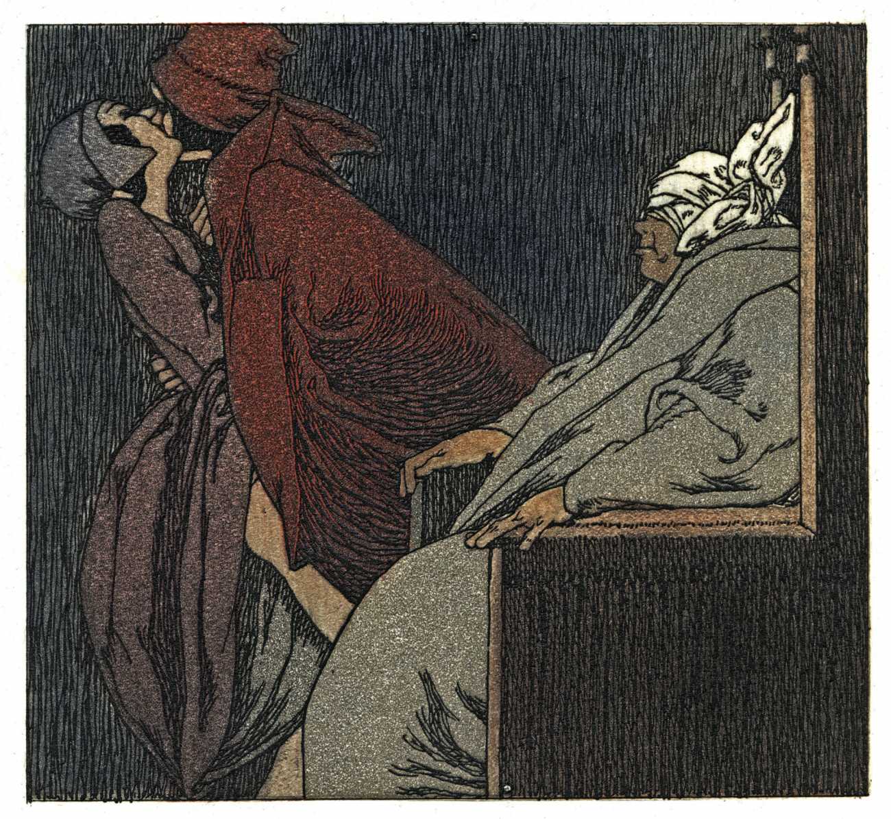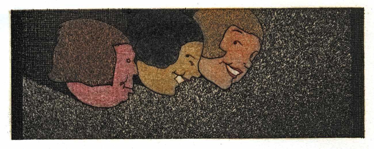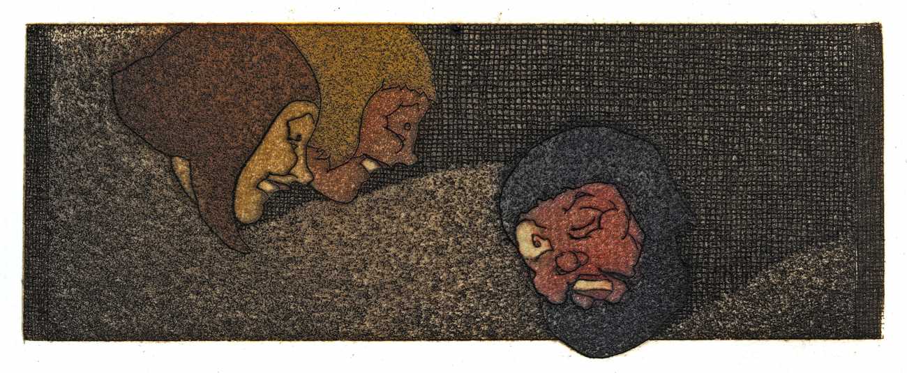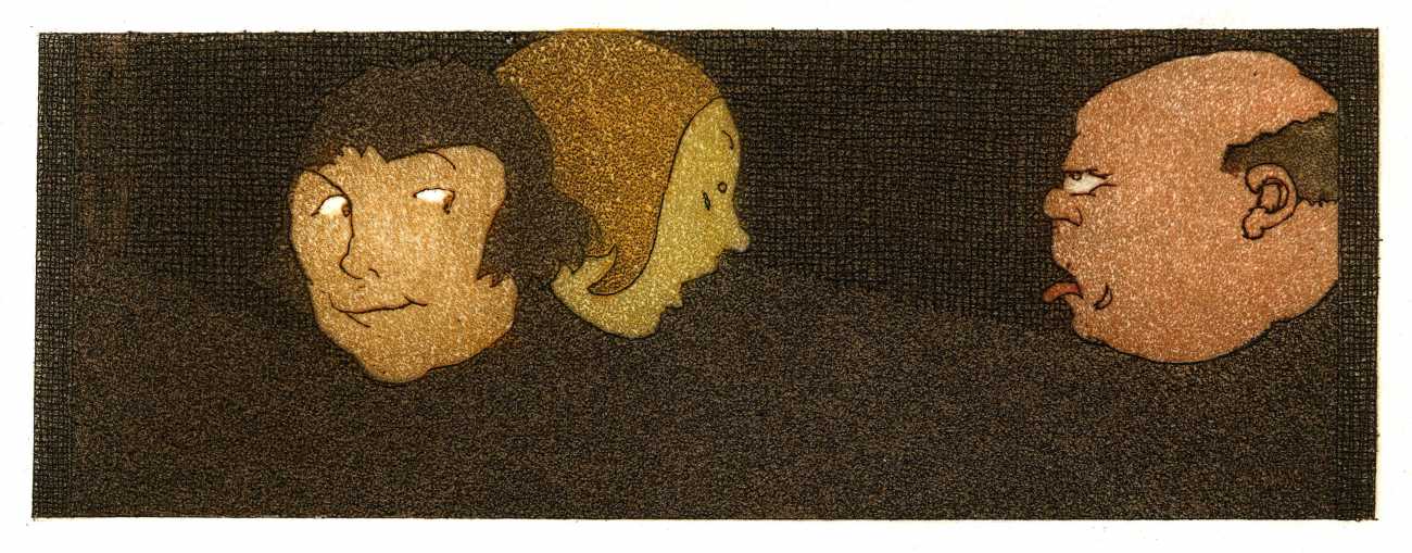 Lapuszewski’s illustrations for the Nouvelles are witty, original and innovative. The header for each tale introduces the characters, each tale has a main plate, and where there is room at the end of a tale a small image, usually signed ‘St’ for Stall, is inserted. Many of the plates are also daring in exploring the limits of printing, with fine crosshatching and detailed line work often almost disappearing into a dark background.