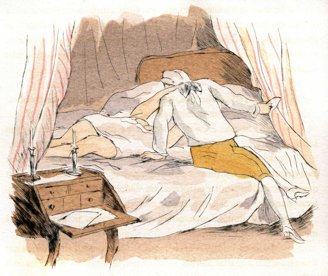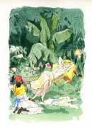 Edelmann’s line and watercolour illustrations are the perfect foil for Grassal’s text, capturing the combination of heat and tension permeating the text. They are considered to be his best work in the genre.