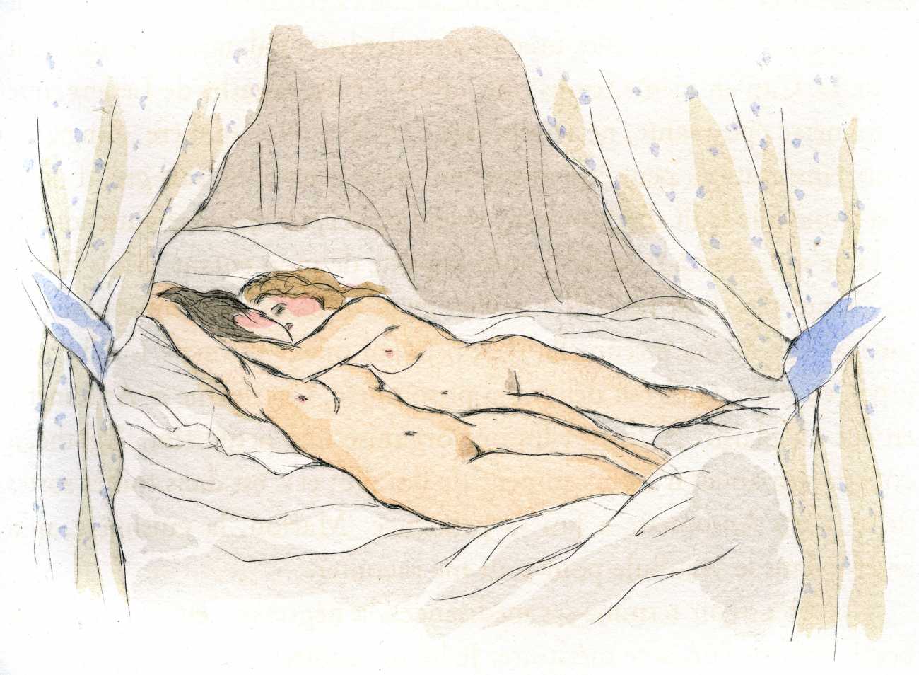 Her twists and turns seemed to be nothing but a voluptuous mischief, to make as much as possible of the beauties of her sex, the grace of her breasts made more apparent, her vast rump which she flaunted. Finally he grabbed her and hugged her to him. He took her full length on the sofa, and she struggled playfully, moving her majestic buttocks under his firm grip.