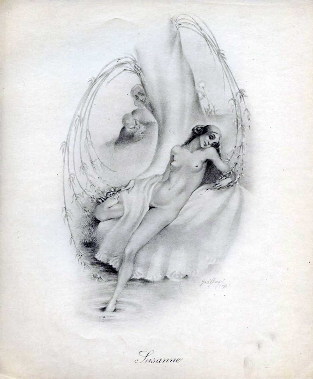 Here we have Susannah and the elders and Potiphar’s wife, Apollo and Leda with her swan, and Paul Verlaine’s lesbian amies. And moi-même, herself as a beautiful young woman, cat on her shoulder, ready to experience all that life and art still had to offer – a truly inclusive portfolio of courageous dreams.