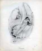 Margit Gaál published her only known portfolio of prints when she was just twenty-two years old and still studying in Budapest. Songes galantes (Courageous Dreams) seems to sum up all the romantic – bordering on erotic – dreams of a young art student steeped in literature, religion and mythology.
