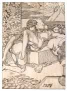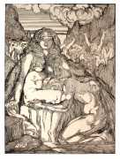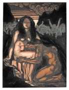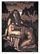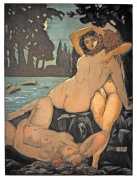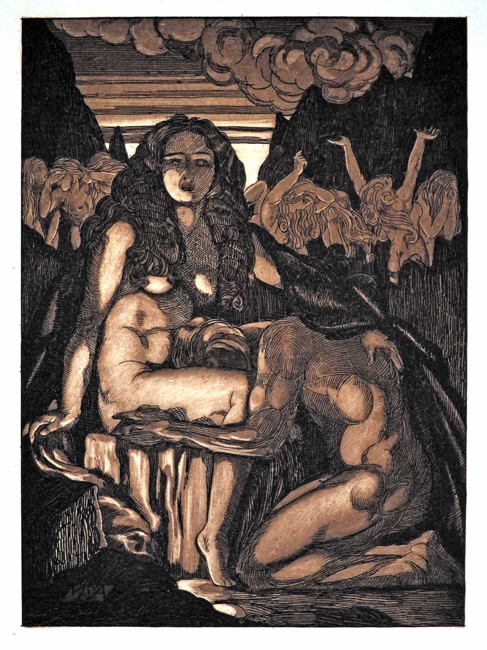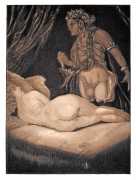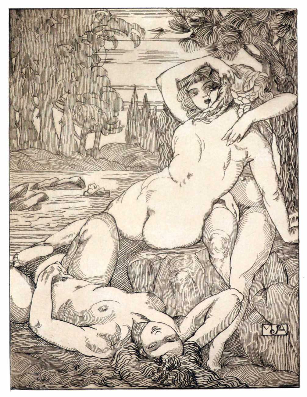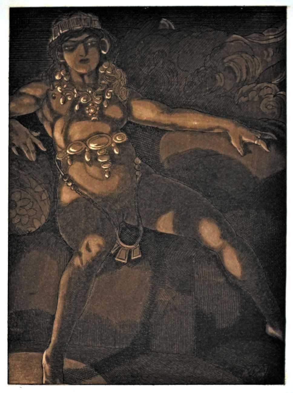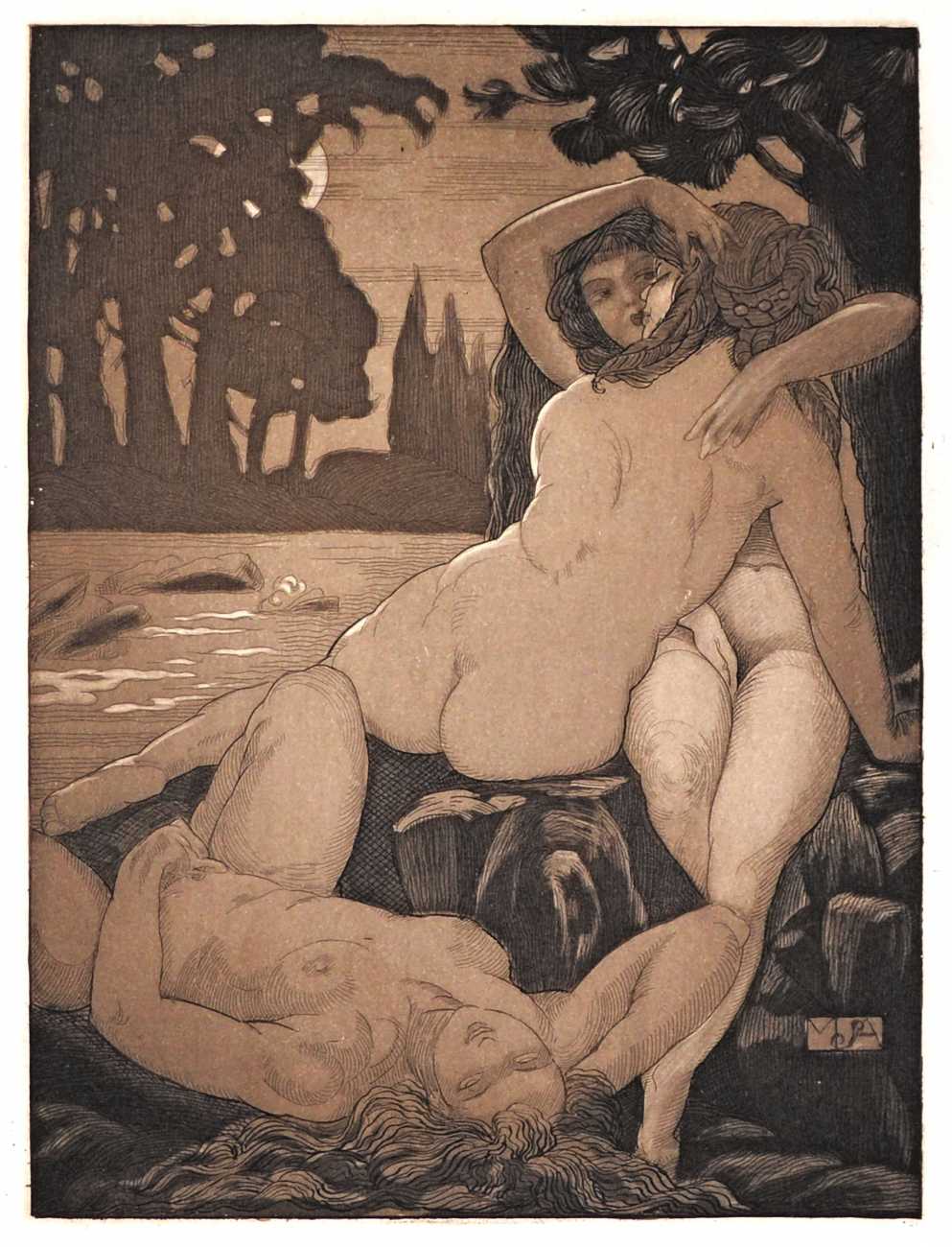 This made the Pièces condamnées particularly attractive to publishers of limited illustrated editions. The first portfolio specifically of Pièces condamnées images, by Jean Gabriel Daragnès, appeared in 1917 (you can see it here), to be followed five years later by de Becque’s interpretation. The de Becque Pièces condamnées was a very small edition, each of the six plates being produced in three states, one in sepia liner, one in black and sepia, and one in full colour; we have included all three states.