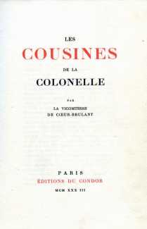 The Dugo-illustrated Les cousines de la colonelle was published in Paris by Éditions du Condor in a limited numbered edition of 300 copies.