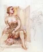 This intriguing portfolio of drawings is in the collection of French collector Alexandre Dupouy, and in 2007 he collaborated with the publisher Astarte to produce a limited-edition book based on the collection, with an extended preface by literary critic Serge Koster. This lovely little volume, with more images than we have shown and text in French and English, is available from Astarte here.