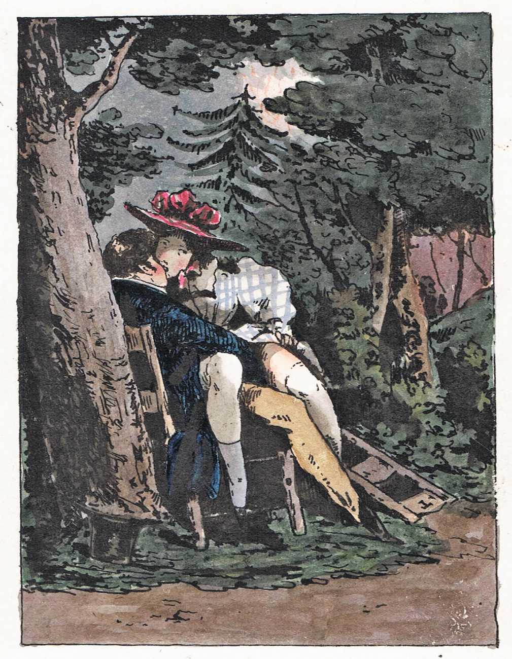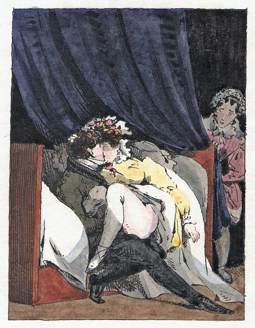 A second selection of Monnier erotic engravings, similar to the Nordmann collection but much smaller, found its way to the collector Hans-Jürgen Döpp, who published them under the title La bonheur de la vie quotidienne (The Happiness of Everyday Life). Some are the same as Nordmann copies but in different colourings (each engraving was hand-coloured), together with several not included there.