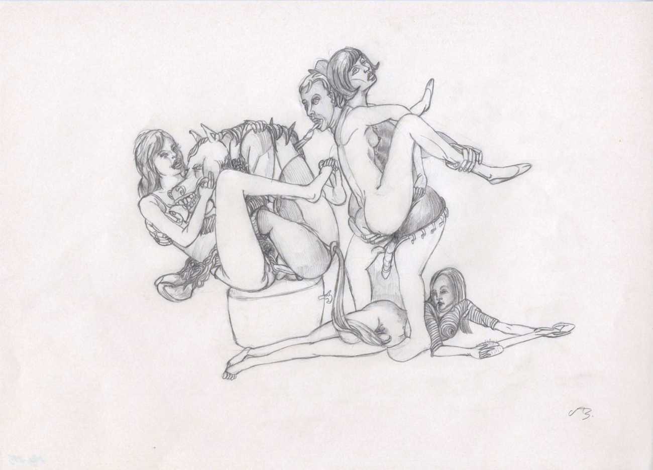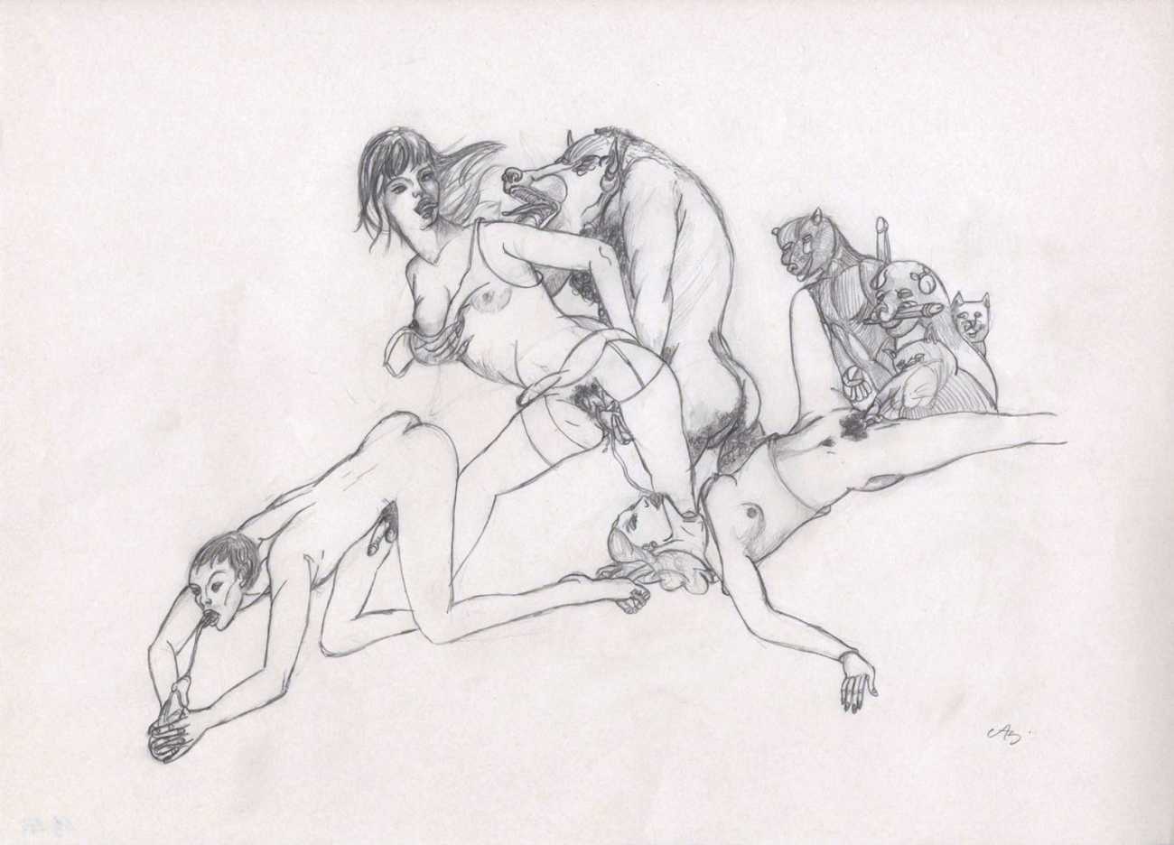 Most of the drawings are signed, the auctioneers thought as ‘CAB’, though it could just as easily be ‘CAZ’. They didn’t know the artist’s identity, and nor do we. But the chances are that somebody does, so if you can provide us with any leads do please let us know.