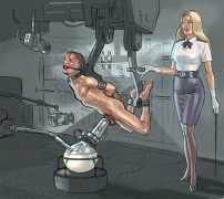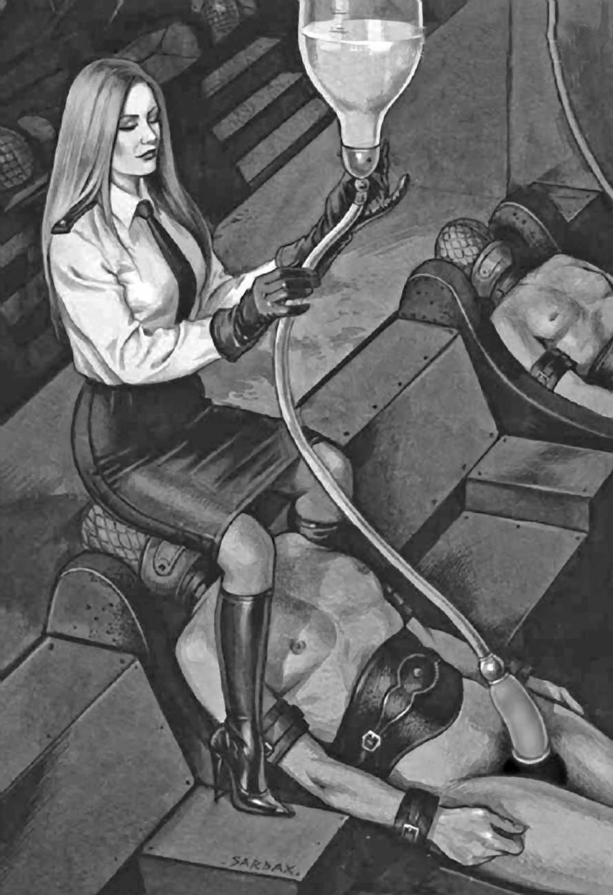 ‘The Milking Machine’ is one of Sardax’s wildest fantasies, and maybe not surprisingly one of his most popular, his website followers returning to view it again and again. This series is loosely set within a Russian prison system – a kinky gulag – where the inmates are regularly drained in the most humiliating manner possible.