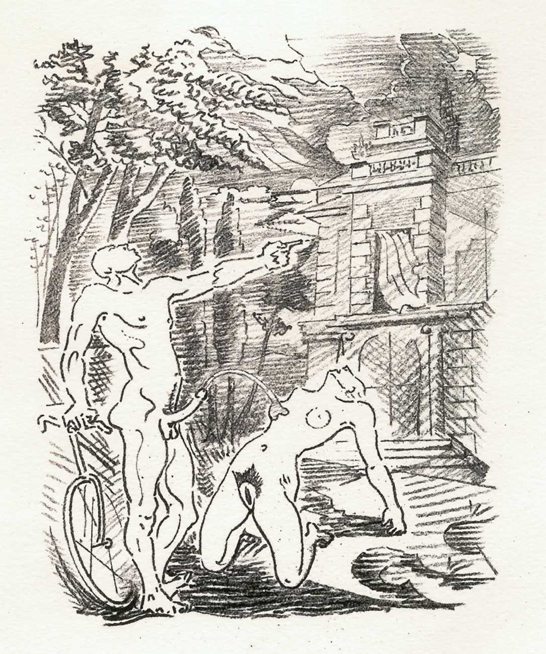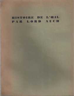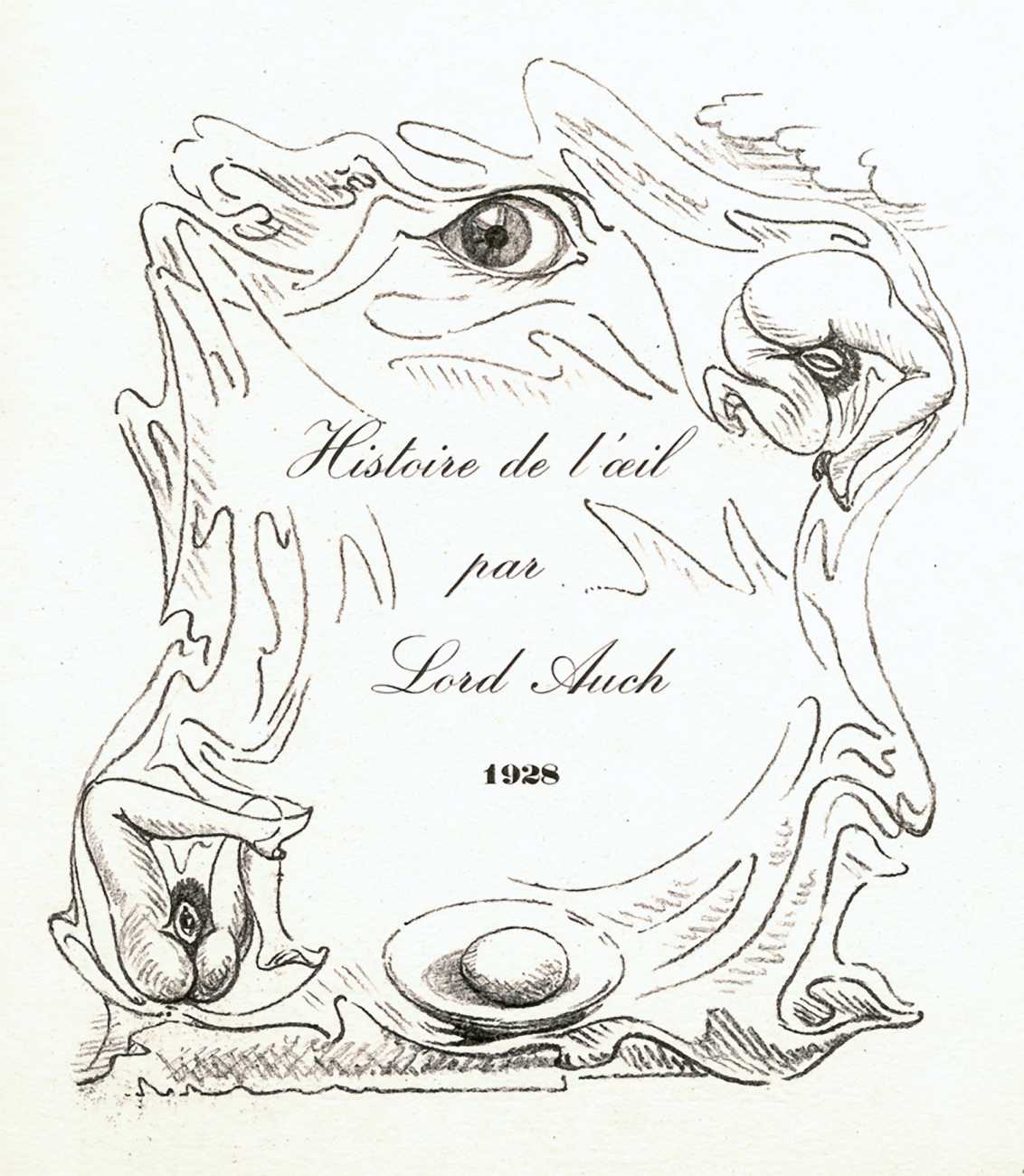 It was some time in 1927 that good friends André Masson and Pascal Pia had the idea of a collection of erotic works, with the publisher René Bonnel taking charge of the clandestine printing. Masson recruited his friends Louis Aragon and Georges Bataille as authors. After Aragon’s Le Con d’Irène (Irene’s Cunt), Histoire de l’oeil (Story of the Eye) was the second work in the collection, written by Bataille under the pseudonym Lord Auch. Like Aragon and Irène, Bataille was at pains not to reveal his true identity as author of Histoire de l’oeil, though just before he died he did explain (under another pseudonym, Louis Trente), that ‘Lord Auch’ was chosen as a cryptic translation of ‘God relieving himself’, ‘auch’ being an abbreviation for ‘aux chiottes’ – in the toilets. Due to the intervention of the Paris police, the series never went beyond two volumes.