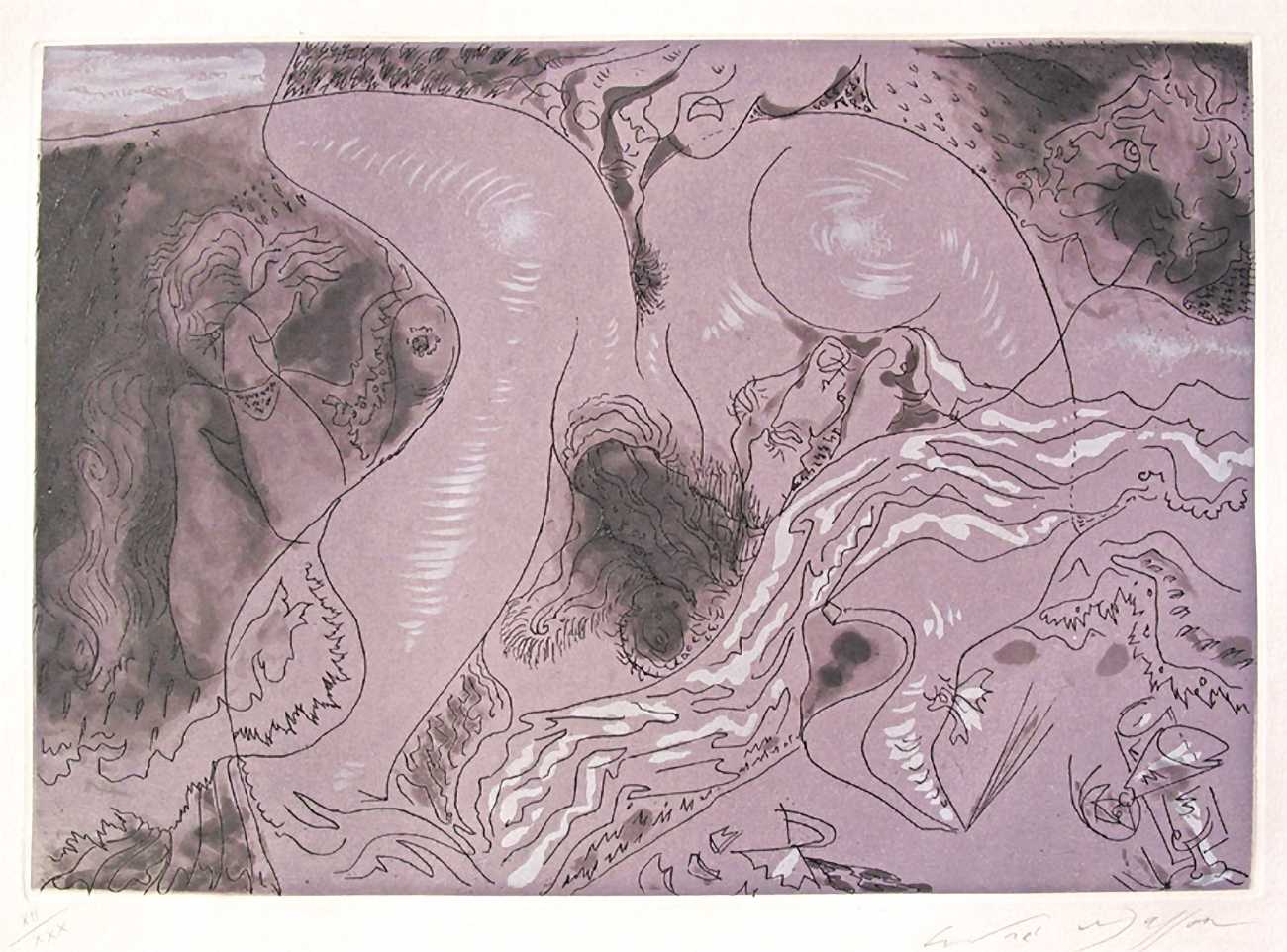 André Masson’s engravings for Le mort are some of his best work, well worth careful attention. Marie’s tortured excesses, fuelled by religious fantasy and sexual longing, are given full rein in Masson’s expressive compositions. They are a true and powerful tribute to the memory of one of his closest friends.