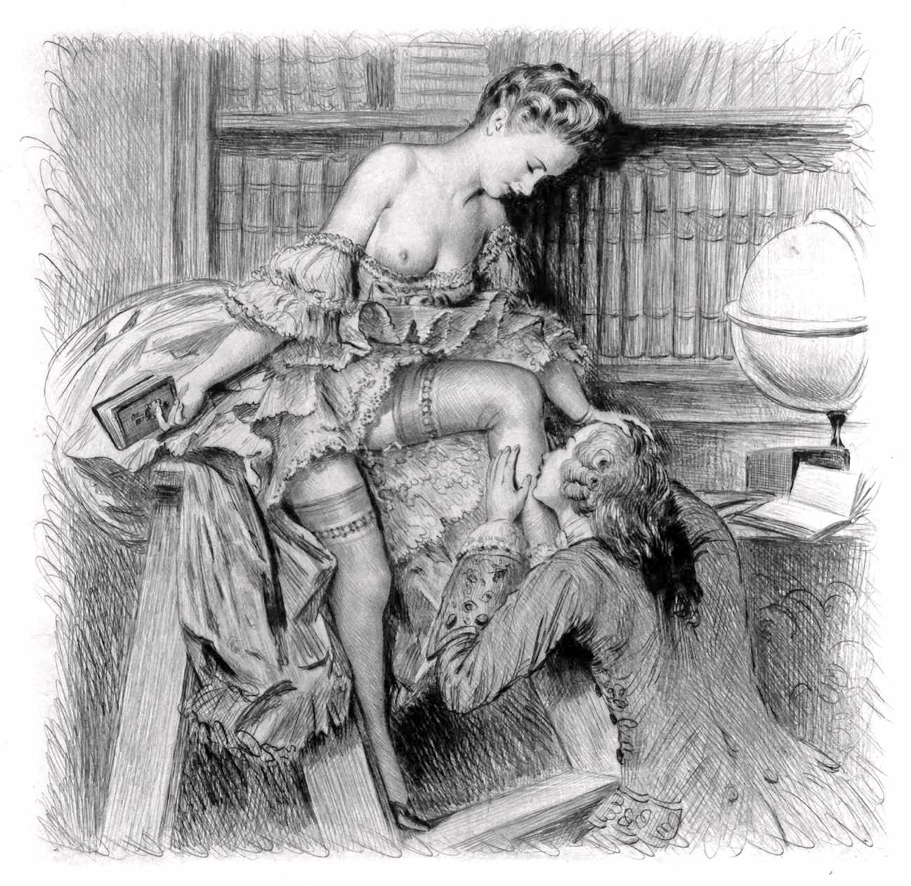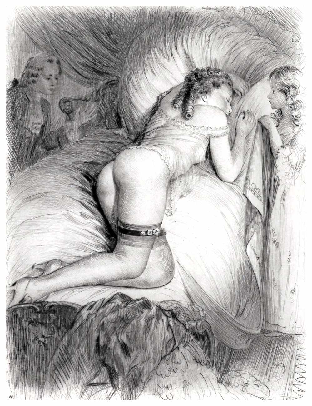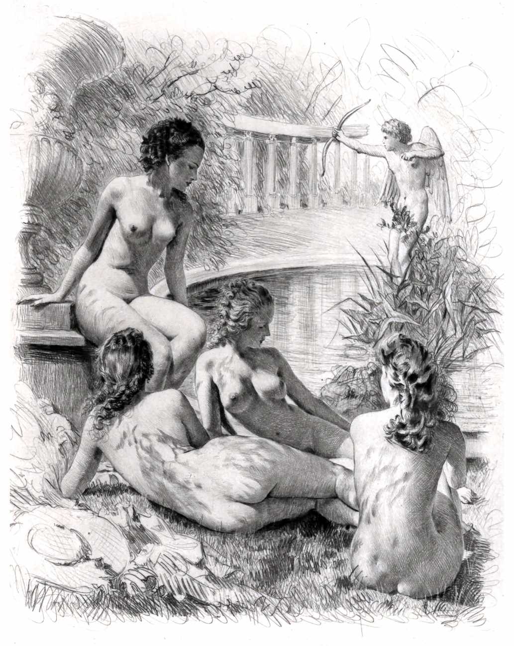 When Bécat was commissioned to illustrate La leçon d’amour, is would appear that the brief suggested a level of explicit nudity which had become post-war acceptable, which allowed him to demonstrate just how good he was at engraving naked women. Here Ninon and her friends are clearly drawn from life, and are almost touchable in their realism.