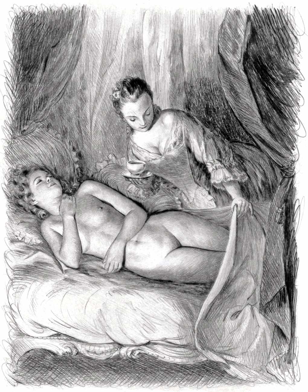 As the years go by, Ninon gives birth to a little girl, Jacquette. It is agreed that the child should be kept away from the shameless spectacle of the statue, so Cupid and the pool are hidden in the heart of a labyrinth. These precautions, however, prove insufficient, so Jacquette’s godmother and housekeeper set about emasculating the statue. Meanwhile Ninon succumbs to the charms of Monsieur de Châteaubedeau, barely out of childhood, to the great despair of the Chevalier Dieutegard, who is secretly in love with Ninon. Dieutegard flees the castle and takes refuge in the hovel of a former gardener who also worships the Marquise. Both come secretly to maintain the labyrinth, the basin and the statue. Much heartbreak and a sudden death punctuate the narrative, but the novel ends with Jacquette’s godfather, the Baron de Chemillé, taking the opportunity to explain what she should know about the role and expression of love in all its forms.