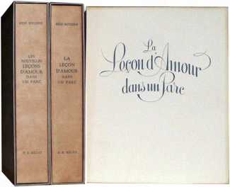 La leçon d’amour dans un parc, together with the sequel, Nouvelles leçons d’amour dans un parc, was published by Les Heures Claires, Paris, in a boxed, numbered limited edition of 350 copies.