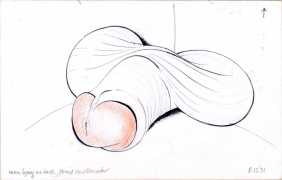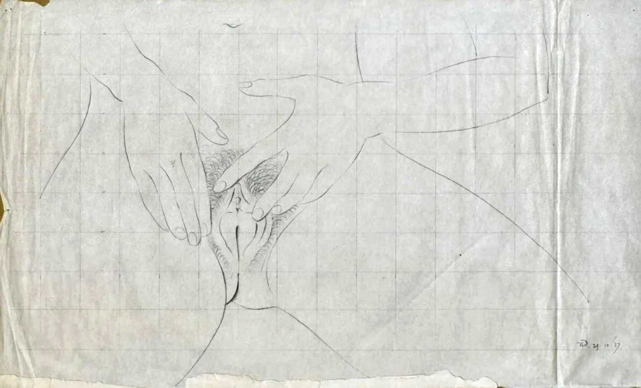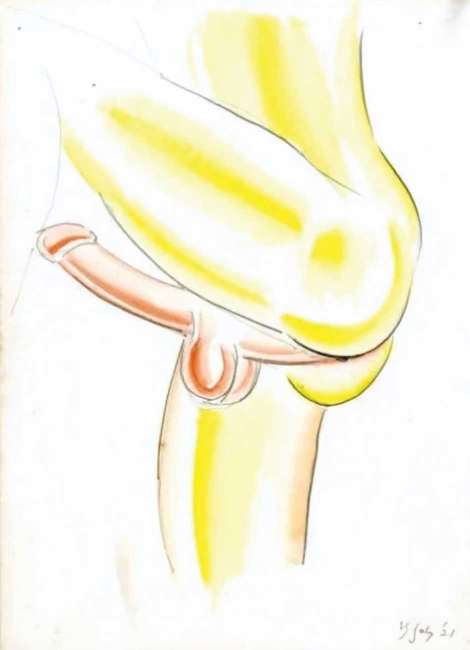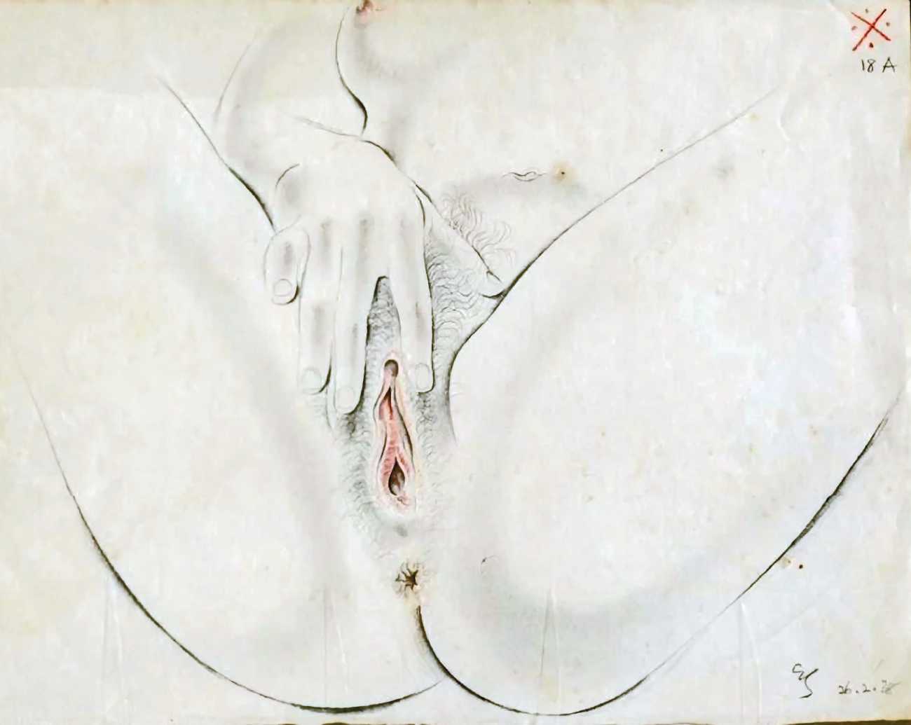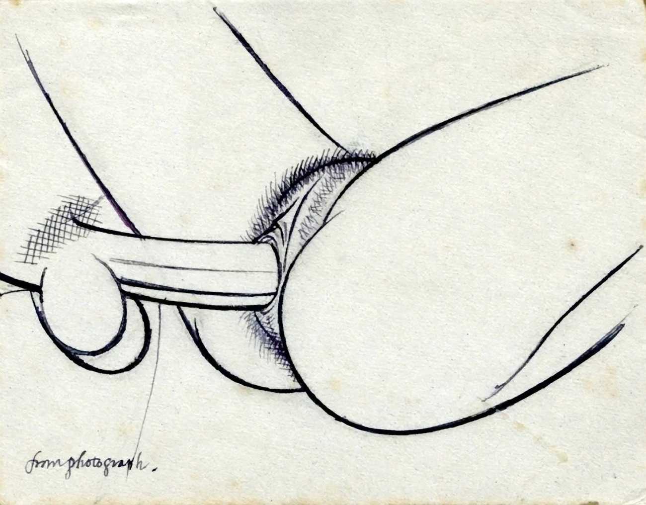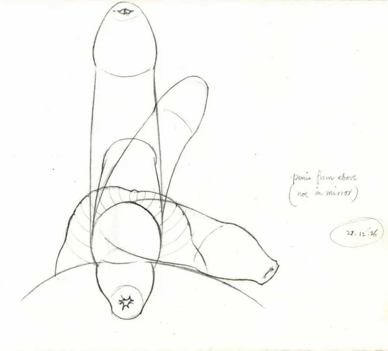 He didn’t just think these ideas – he explored them practically. He drew and measured his own genitals, wanting to know exactly how they expanded and contracted. When possible he watched and recorded other people’s, and fantasised and drew what he imagined possible.